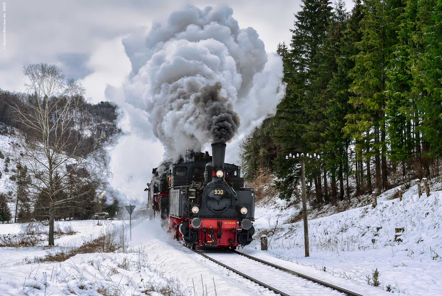 Lichtenstein Zwischen Honau und Lichtenstein muss ein Höhenunterschied von 179 Metern überwunden werden. Damit die Nebenbahn hier möglichst einfach und damit kostengünstig trassiert werden konnte, entschied sich die damalige Königlich Württembergische Staatseisenbahn erstmals für den Bau einer Zahnradbahn und die Beschaffung spezieller Fahrzeuge, die sowohl auf den herkömmlichen Reibungsstrecken als auch auf der Zahnradbahn eingesetzt werden konnten. Lokomotiven, Wagen und Zahnstangen lieferte die Maschinenfabrik Esslingen, die in dieser Zeit zu einem weltweit führenden Hersteller für diese Technologie wurde. So konnte der Albaufstieg zwischen Honau und der Station Lichtenstein auf einem 2,2 km langen Streckenstück mit einer Steigung von 10% überwunden wurden. Dabei wurde im Gleis eine Riggenbach´sche Leiterzahnstange der Bauart Bissinger-Klose verwendet. Für den Betrieb wurden speziell ausgerüstete Dampflokomotiven sowie Personen- und Packwagen mit Bremszahnrad beschafft, die durchgehend von Reutlingen über die Zahnradbahn bis auf die Schwäbische Alb eingesetzt werden konnten. Der Güterverkehr spielte auf diesem steilen Abschnitt keine große Rolle, bereits 1951 gab nur noch einen Stückgut-Kurswagen. Der Personenverkehr war hingegen beachtlich, besonders durch den Ausflugsverkehr am Wochenende. Allerdings nahmen, wie auf vielen anderen Nebenbahnen auch, durch den zunehmenden Individualverkehr ab den 50er Jahren die Beförderungszahlen stetig ab, so dass am 28. Juli 1969 der Abschnitt Honau - Kleinengstingen und damit auch die letzte DB-Zahnradstrecke stillgelegt werden musste. Nach der Stilllegung gab es 1969 nochmals eine letzte Schienenbus-Sonderfahrt anläßlich des Morop-Kongress, im Dezember 1970 wurde die Zahnradbahn dann schließlich abgebaut. |
