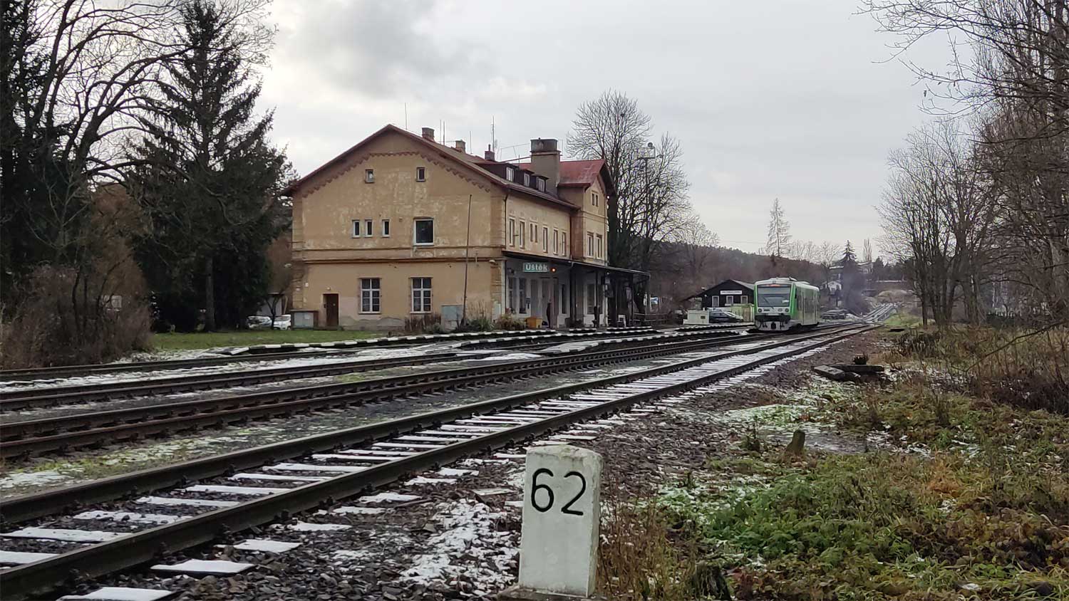 bei km 62,8 bei Úštěk (Auscha Teplitzer Bahnhof)