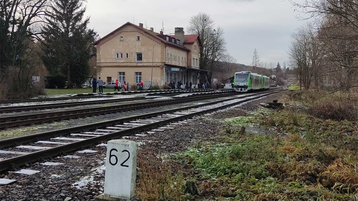 84,960 | km 44,867 der Strecke Bakov nad Jizerou (Bakow) 0,0 - Česká Lípa (Böhmisch Leipa) 44,867 - Rumburk (Rumburg) 90,912 - Grenze Tschechien/Deutschland 97,713 = km 97,690 - Ebersbach (Sachs) 98,494 |