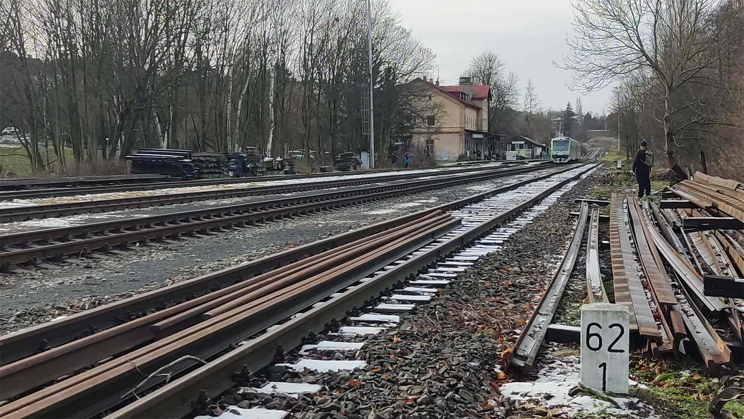 km 62,1 in Úštěk (Auscha Teplitzer Bahnhof) - Blick Richtung Liberec (Reichenberg)
