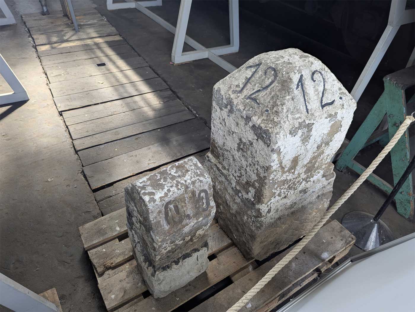 Der Stein befindet sich heute im Ringlokschuppen in Chomutov (Komotau)