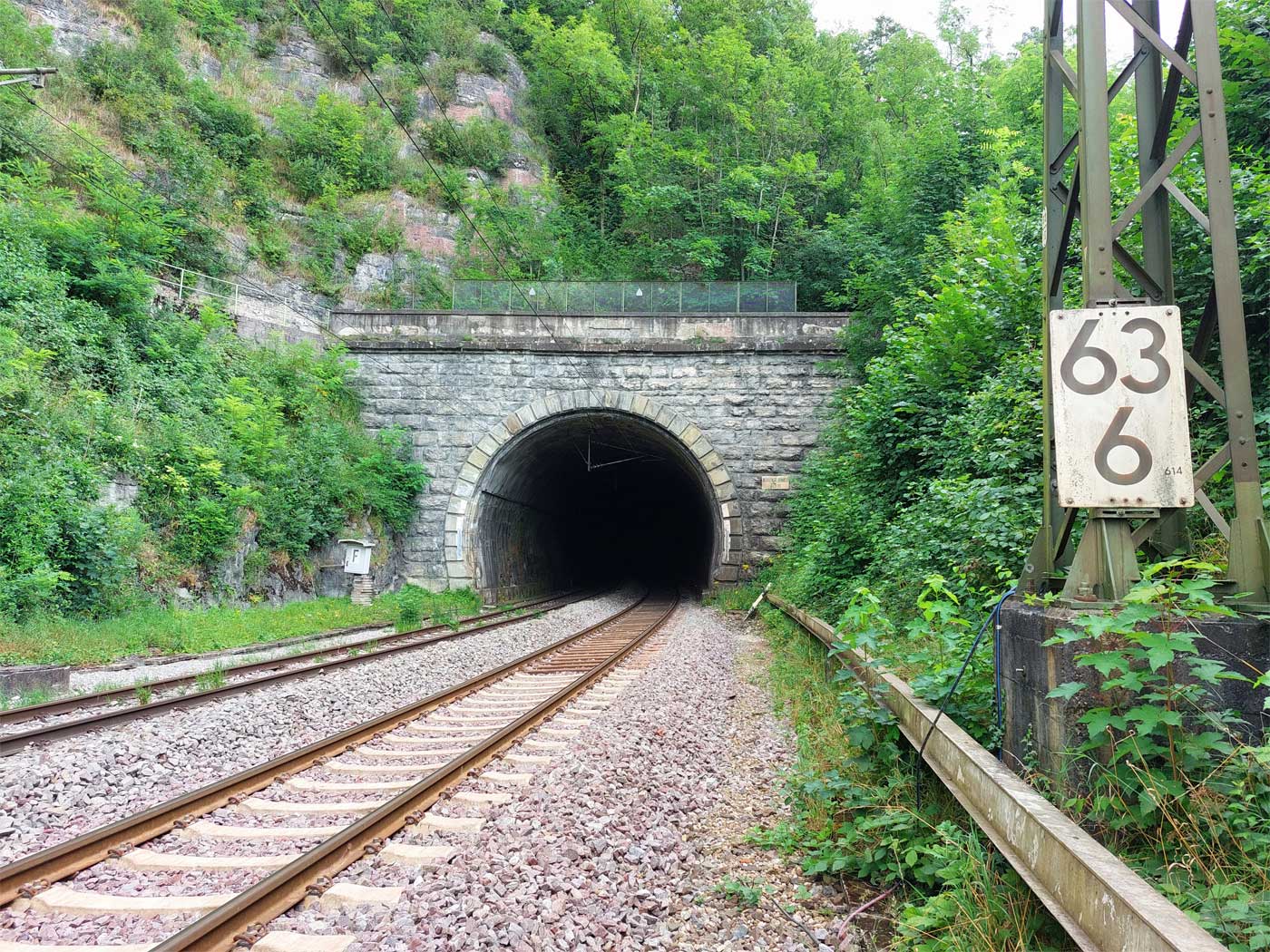 km 63,6 zwischen Eutingen (Württ) und Horb am Südwestportal des Mühlener Tunnels - Blick Richtung Stuttgart