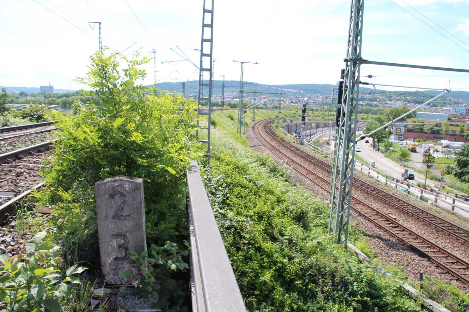 Unten links km 2,0 der Strecke Stuttgart Hbf - Bietigheim-Bissingen (4801)