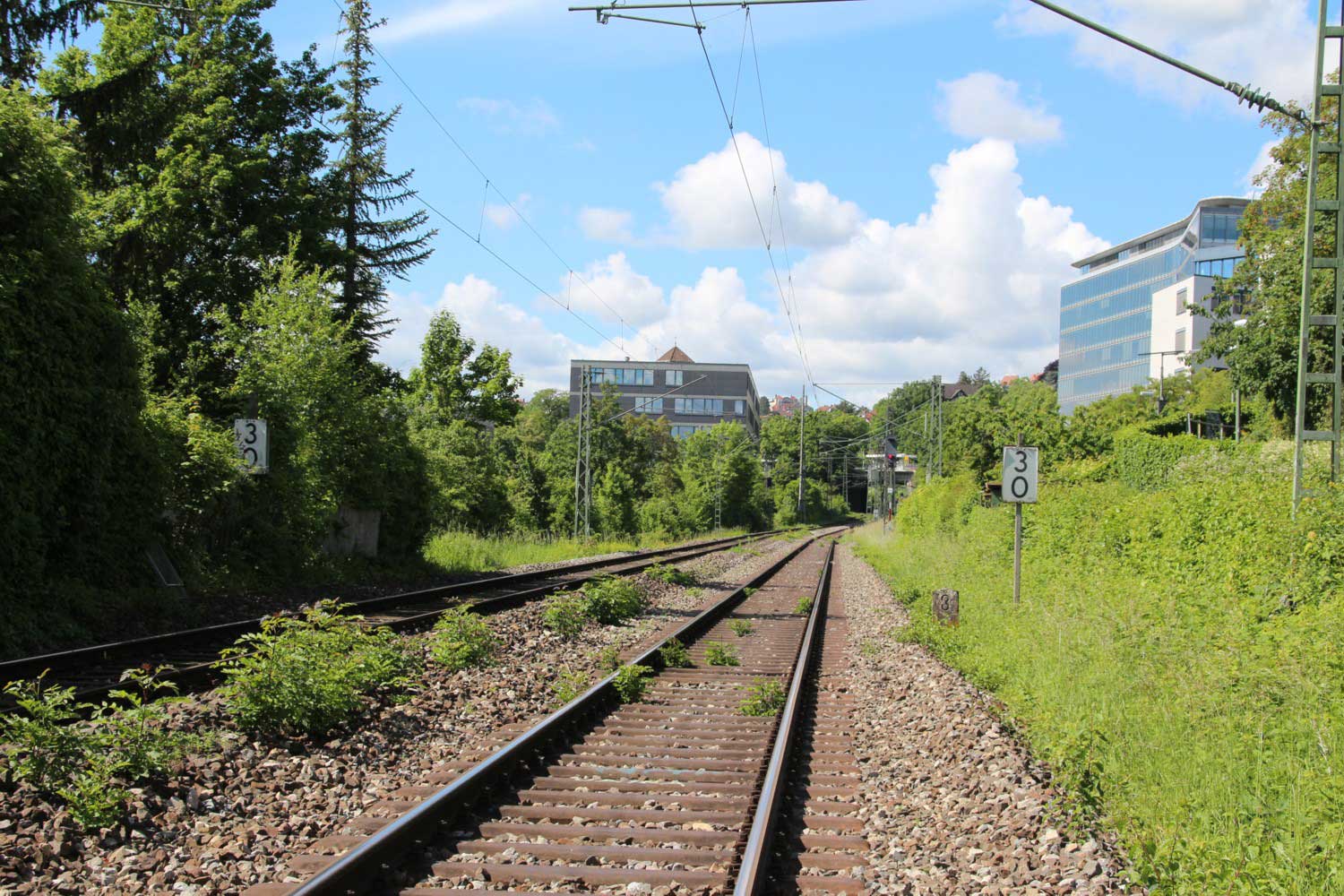 km 2,2 (links) zwischen Stuttgart Hbf und Stuttgart West - Blick Richtung Horb
