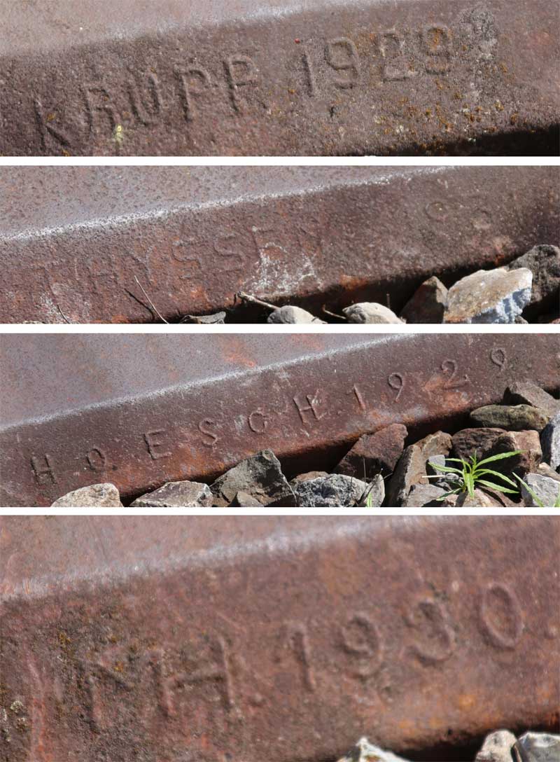 km 1,8; km 1,9 und km 2,0 (Tafeln und Steine) in Stuttart Hbf (zwischen km 1,6 und km 2,1 nur eingleisig)