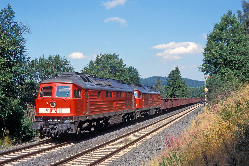 km 86,6 in Oberkotzau - 218 199 und 218 205 mit einem Rübenzug