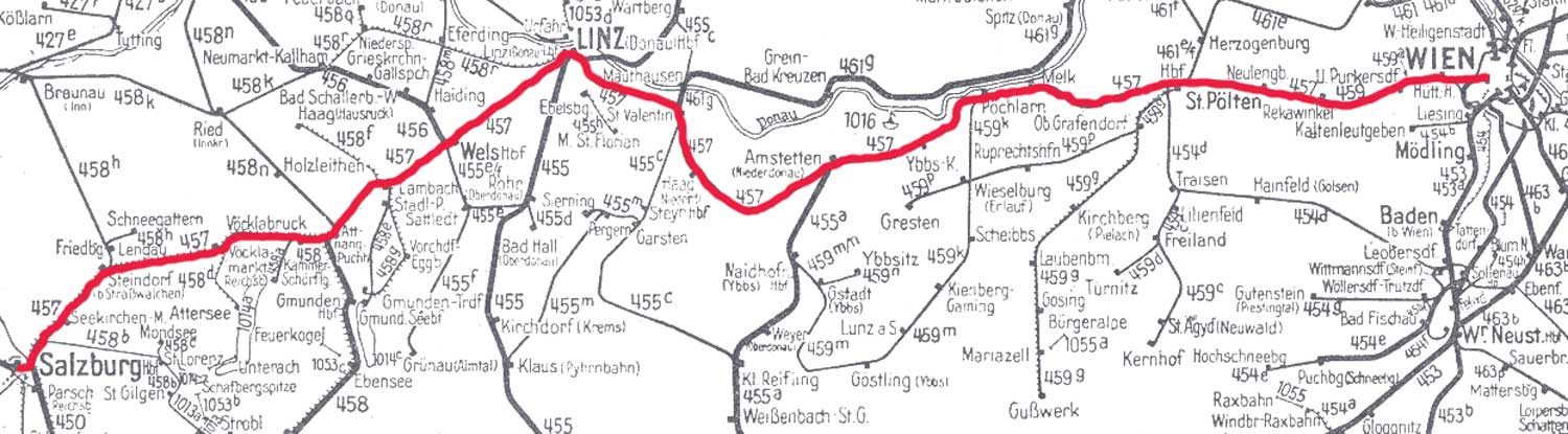 Wien Westbf 0,0 - St Pölten Hbf 60,563 - Ybbs an der Donau 107,137 - Linz Hbf 188,440- Wels Hbf 212,815 - Salzburg Hbf 312,470