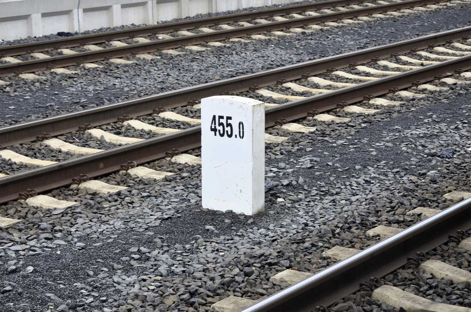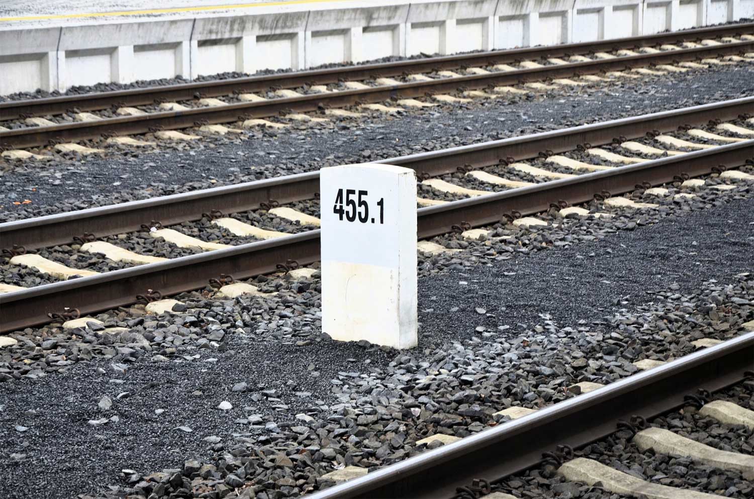km 164,0 (Tafel) und km 164,1 (Stein) in České Velenice [Gmünd (Waldviertel) Hbf] - Blick Richtung Wien
