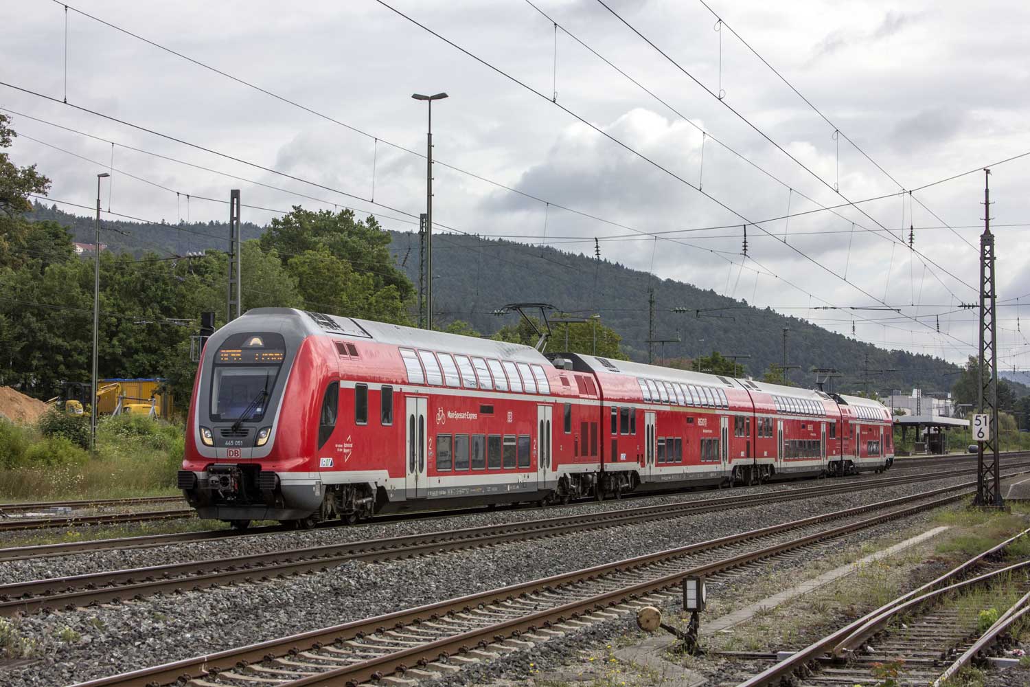 Der Zug befindet sich auf der Strecke Flieden 0,0 - Gemünden (Main) 56,338