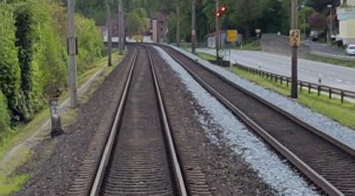 Bei der rechts abgehenden eingleisigen Strecke handelt es sich um die Strecke Gemünden (Main) 0,0 - Bad Kissingen 46,95