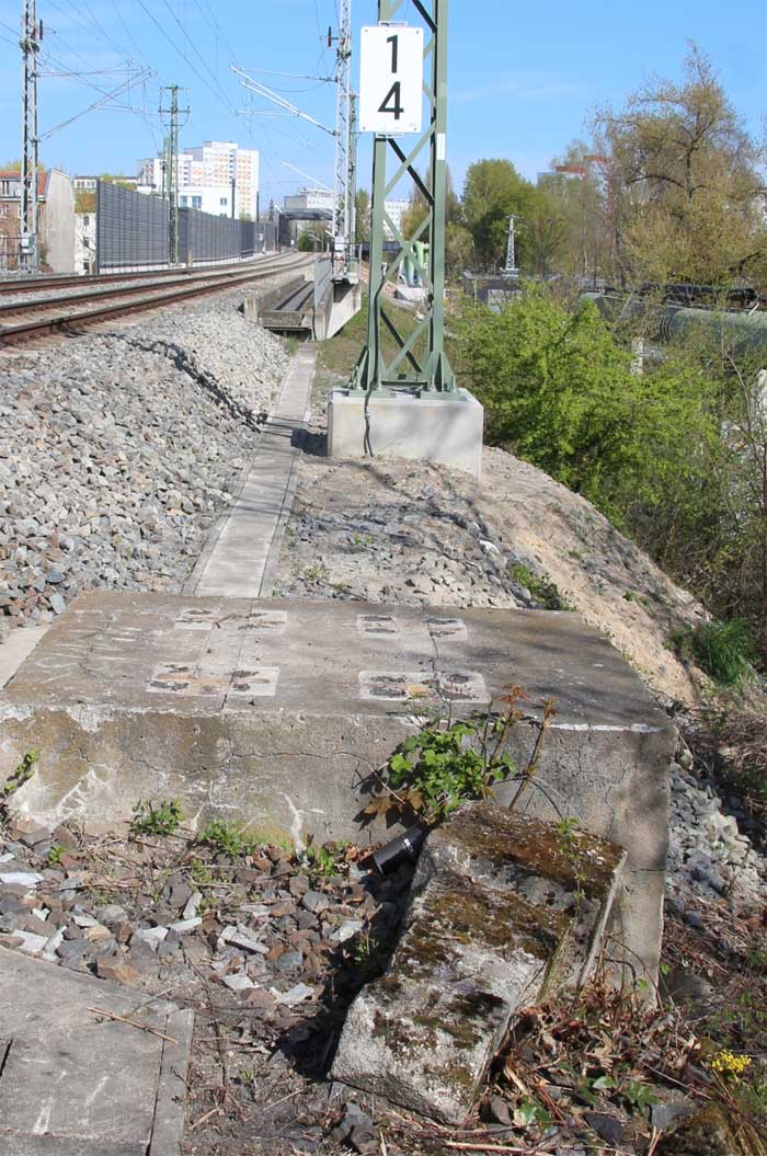 km 1,4 (Tafel und Stein) - Blick Richtung Abzw Berlin Frankfurter Allee (Fst)