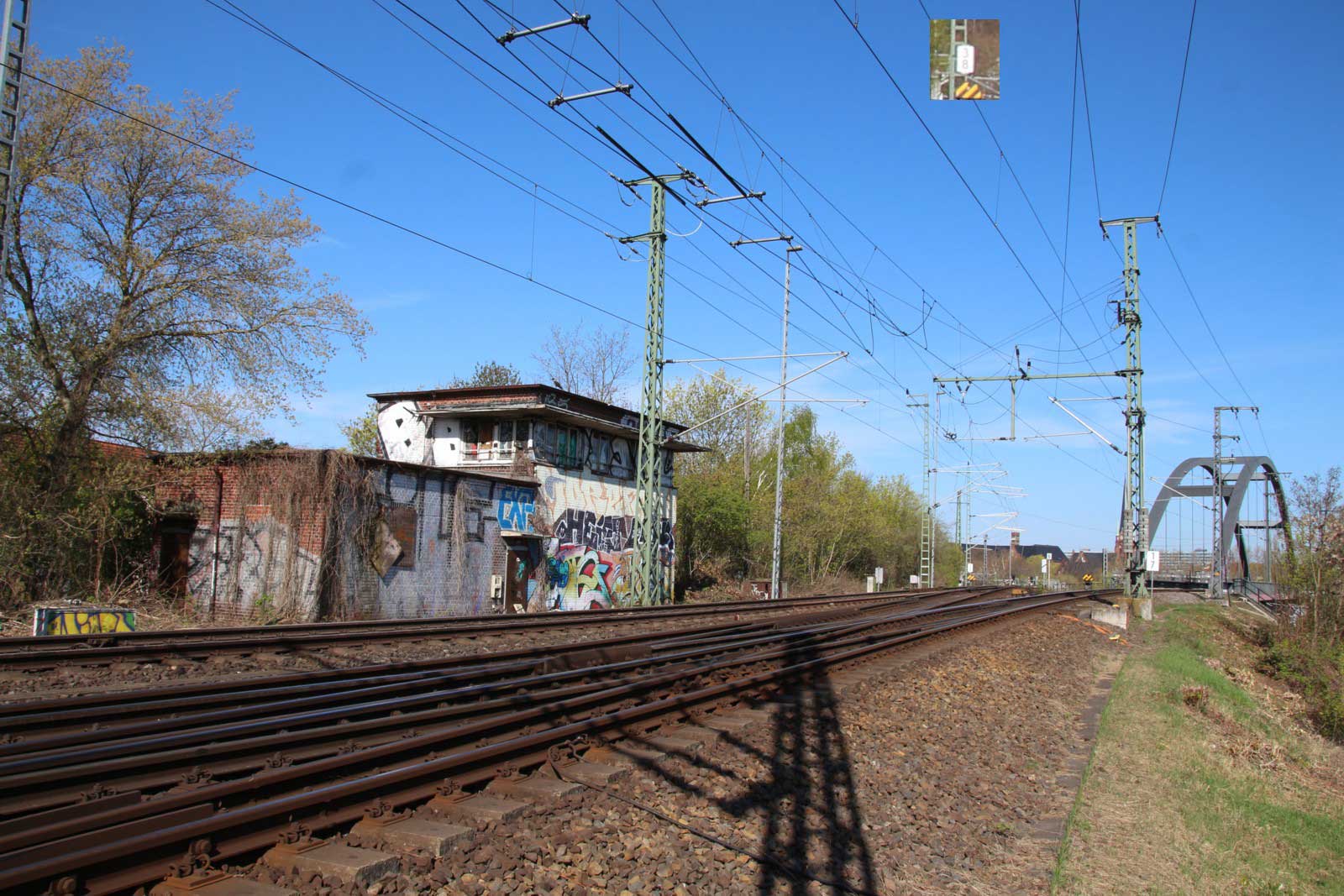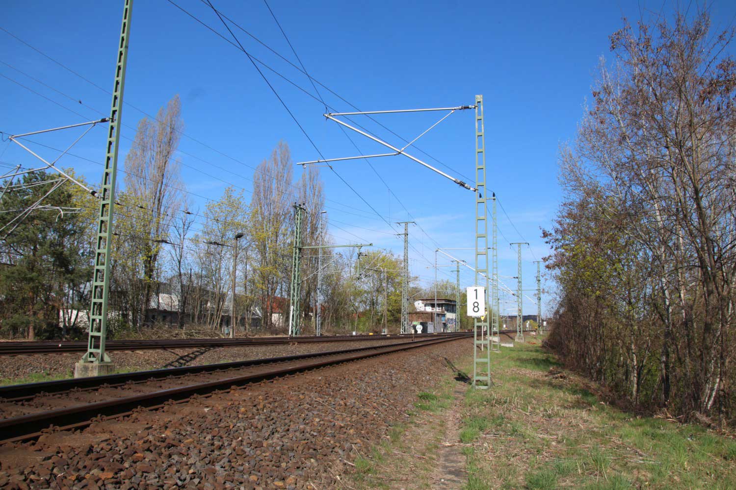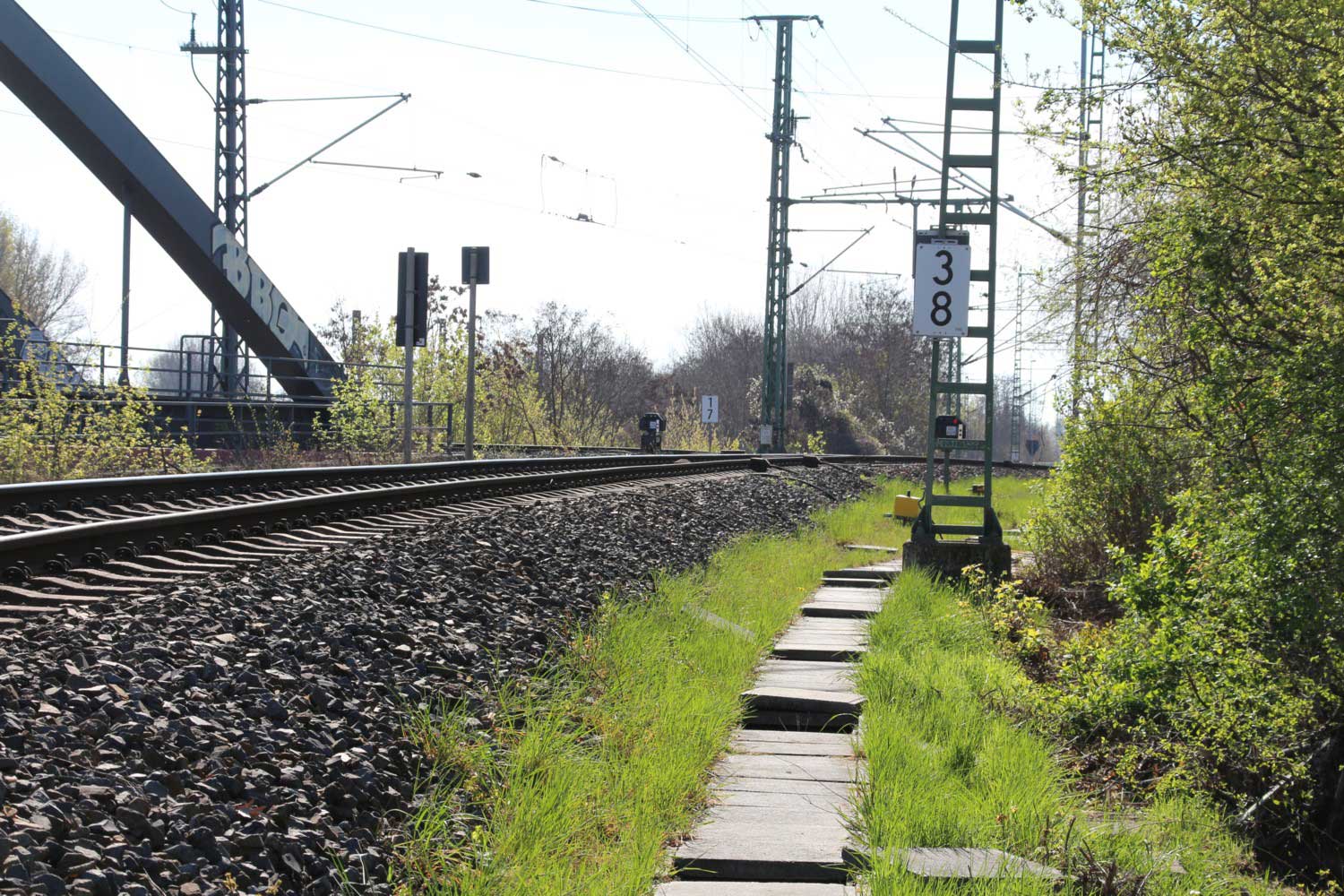 Vorne das ehemalige Gegenrichtungsgleis dieser Strecke,