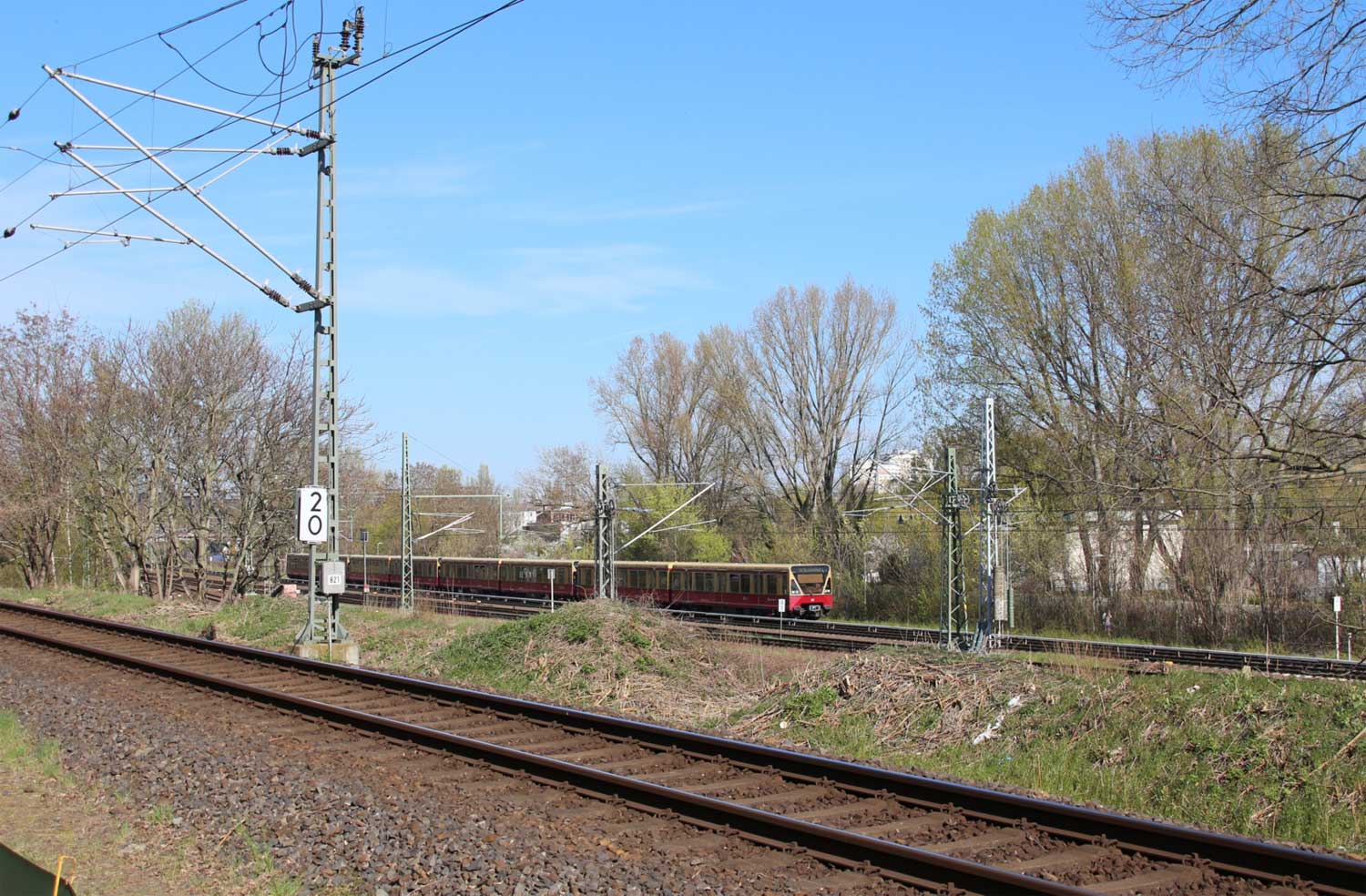 Durch dessen Damm verdeckt das Gegenrichtungsgleis der Schlesischen Bahn (6153) und