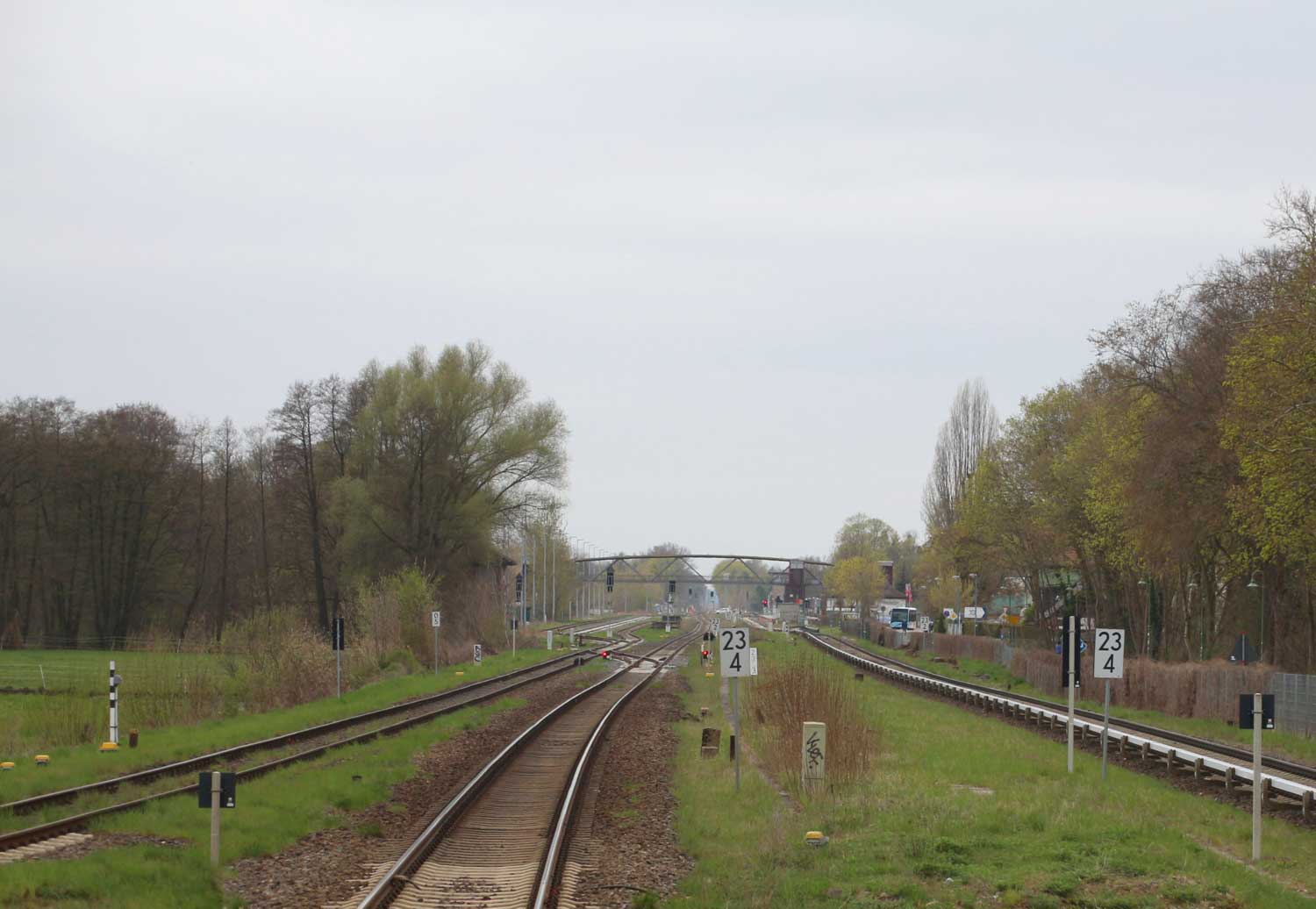| km 22,6 + 190 m der Strecke Berlin Ostbahnhof 0,0 - Strausberg 27,79 - Werbig 67,33 - Küstrin-Kietz 80,99 - Grenze Deutschland/Polen 82,996 (6078) | ||