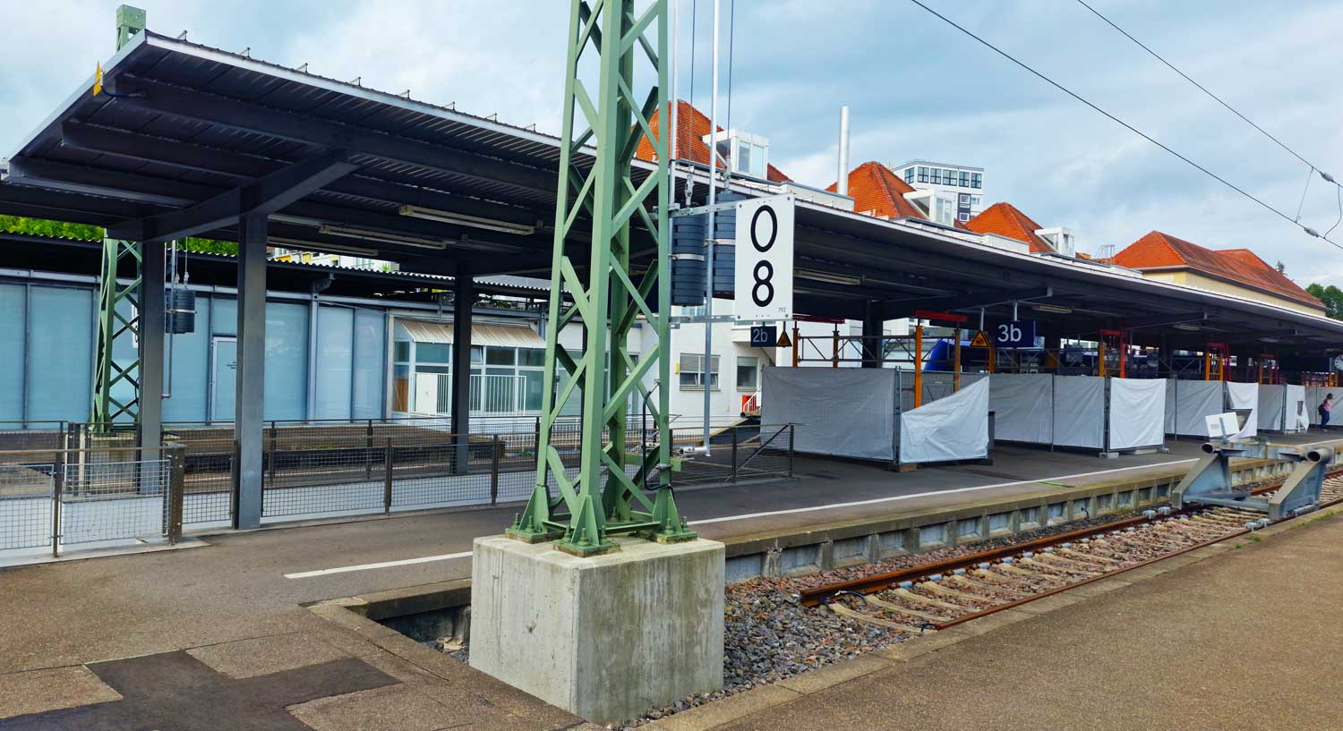 | km 0,0 der Strecke Friedrichshafen Stadt 0,0 - Oberteuringen 10,42 - (Streckenende 10,614) | ||