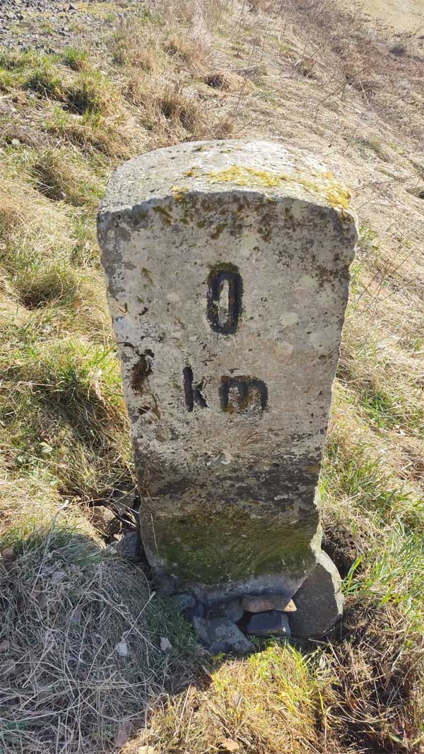 km 0,0 (aufgestellt) in Panský (Herrnwalde)