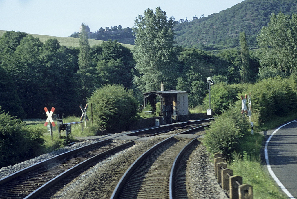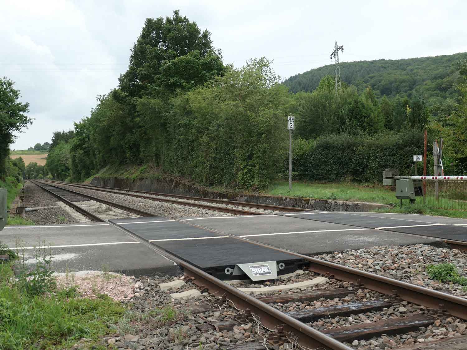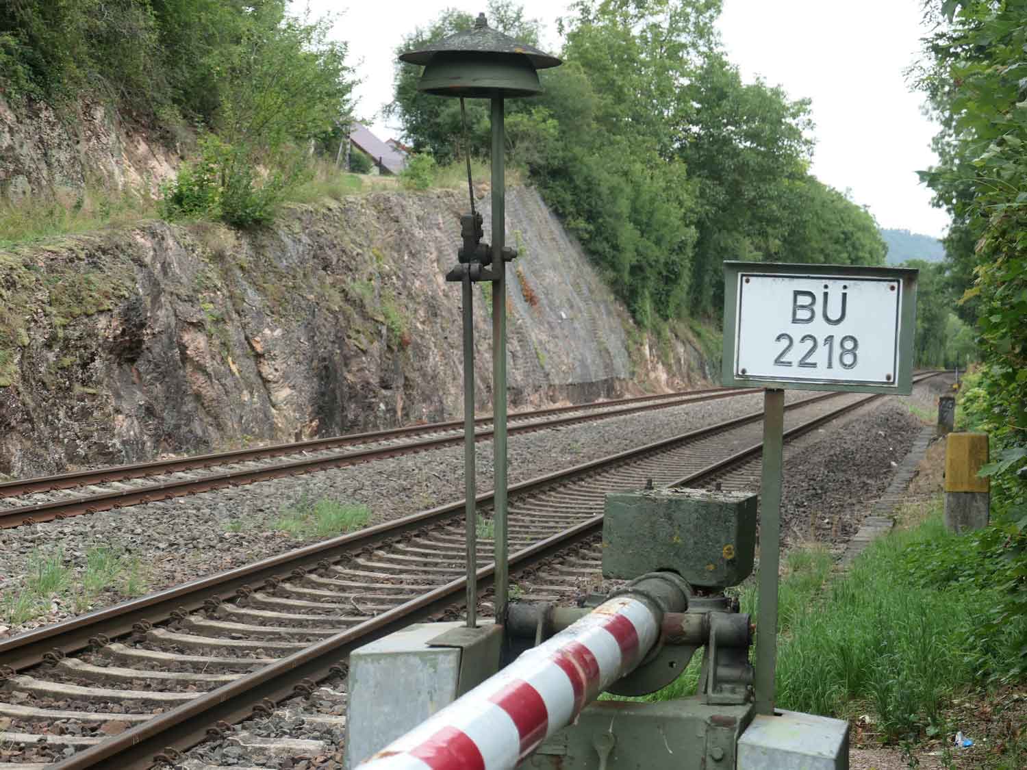 km 43,6 zwischen Hochstätten (Pfalz) und Altenbamberg am Schrankenposten 2111 - Blick Richtung Bad Münster am Stein