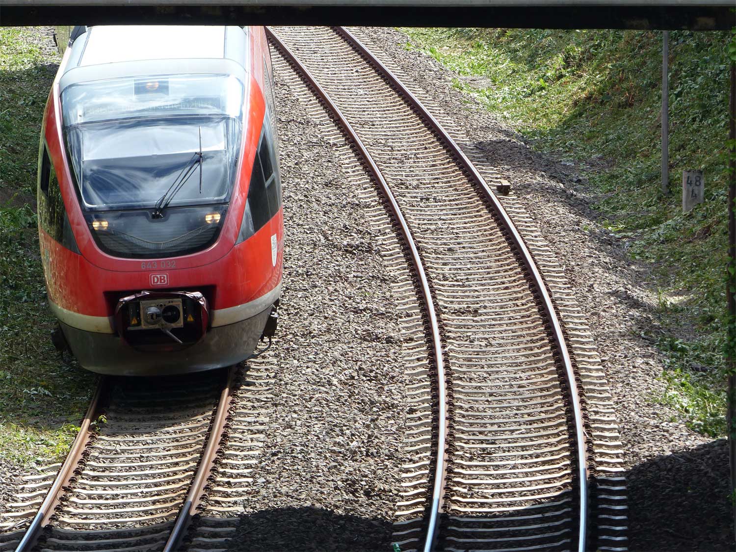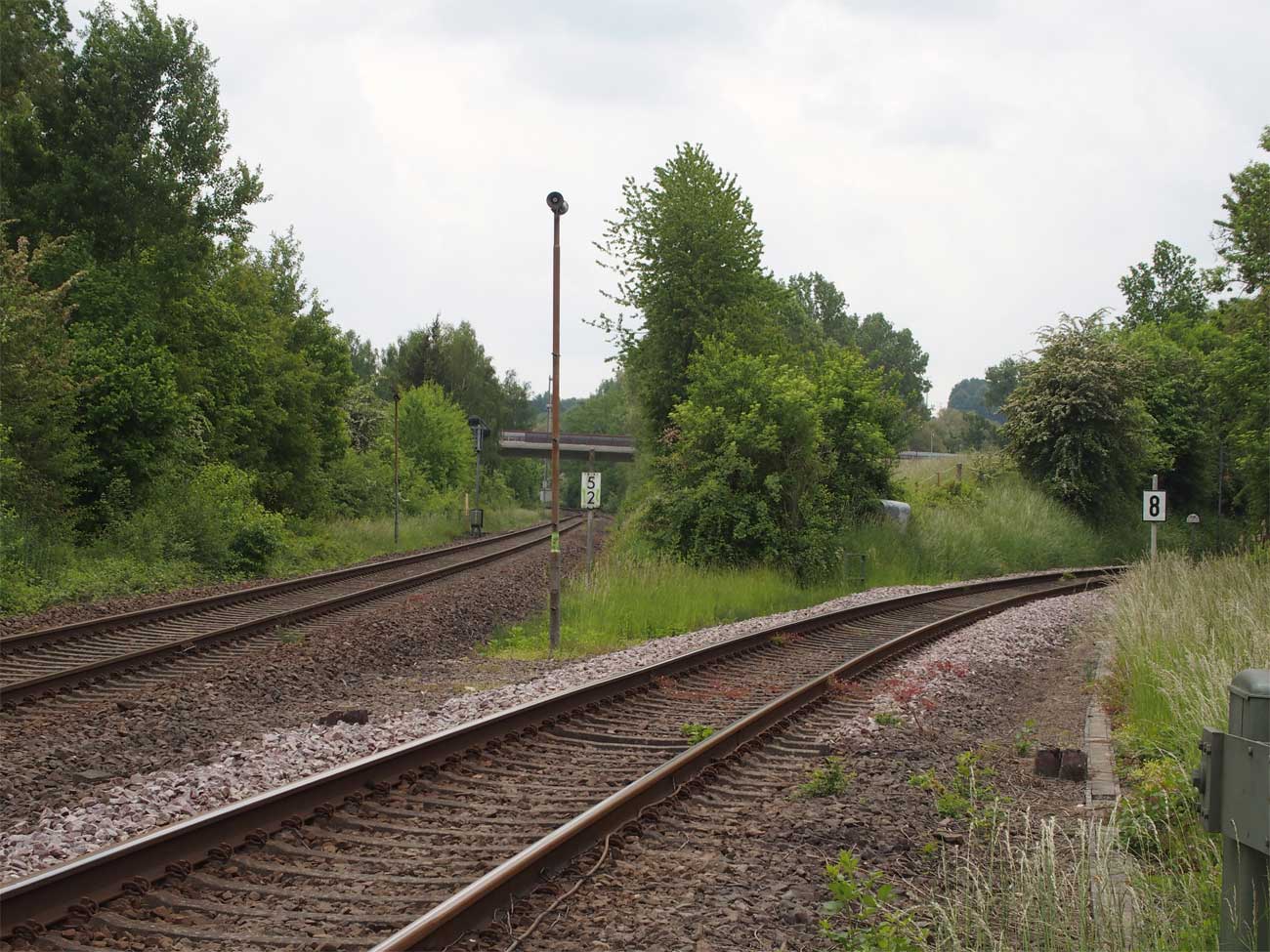 Rechts das Gleis der Strecke Kaiserslautern Hbf 0,00 - Enkenbach 13,18