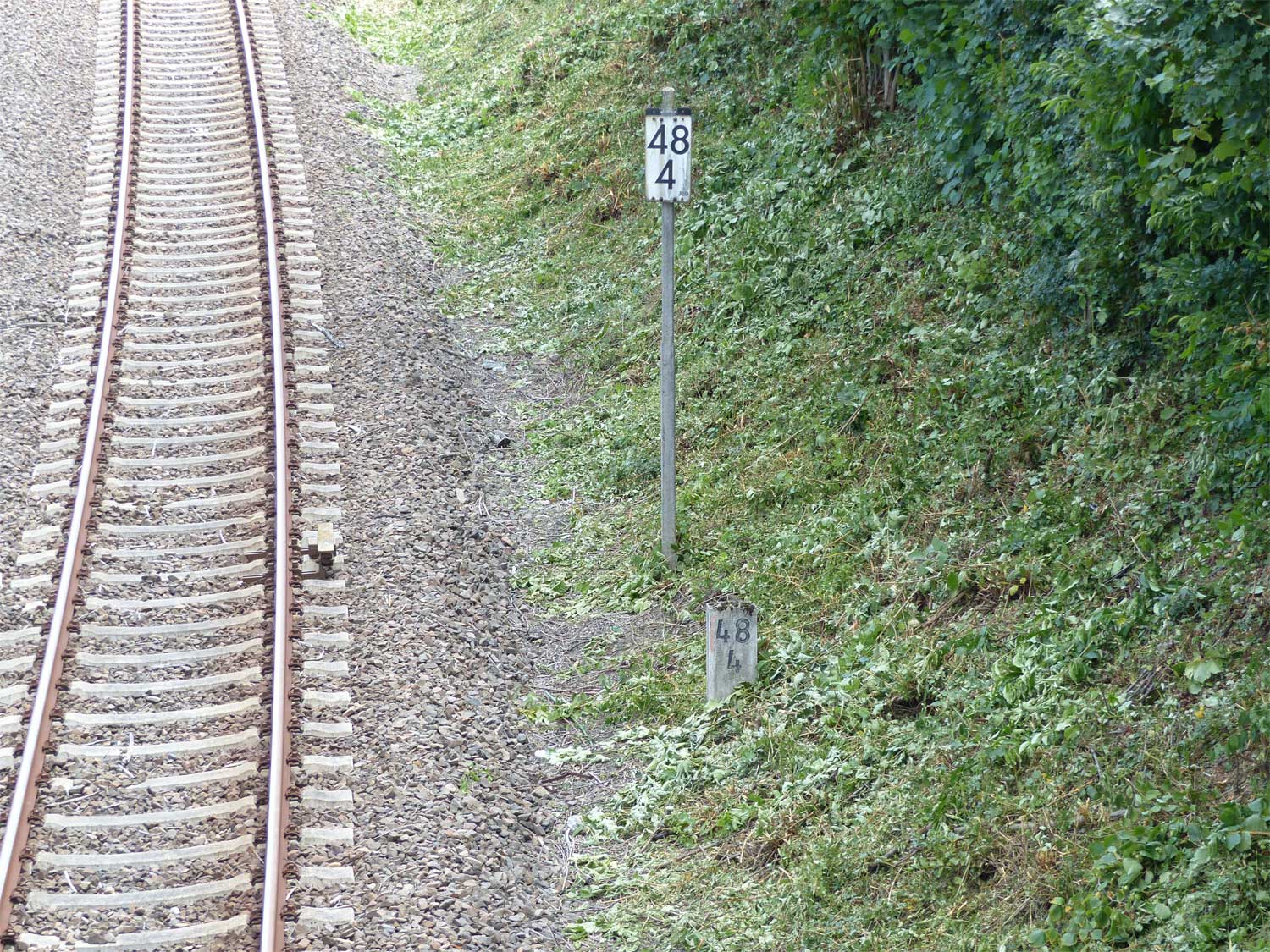 km 48,4 (Tafel und Stein) in Bad Münster am Stein - Blick Richtung Streckenende