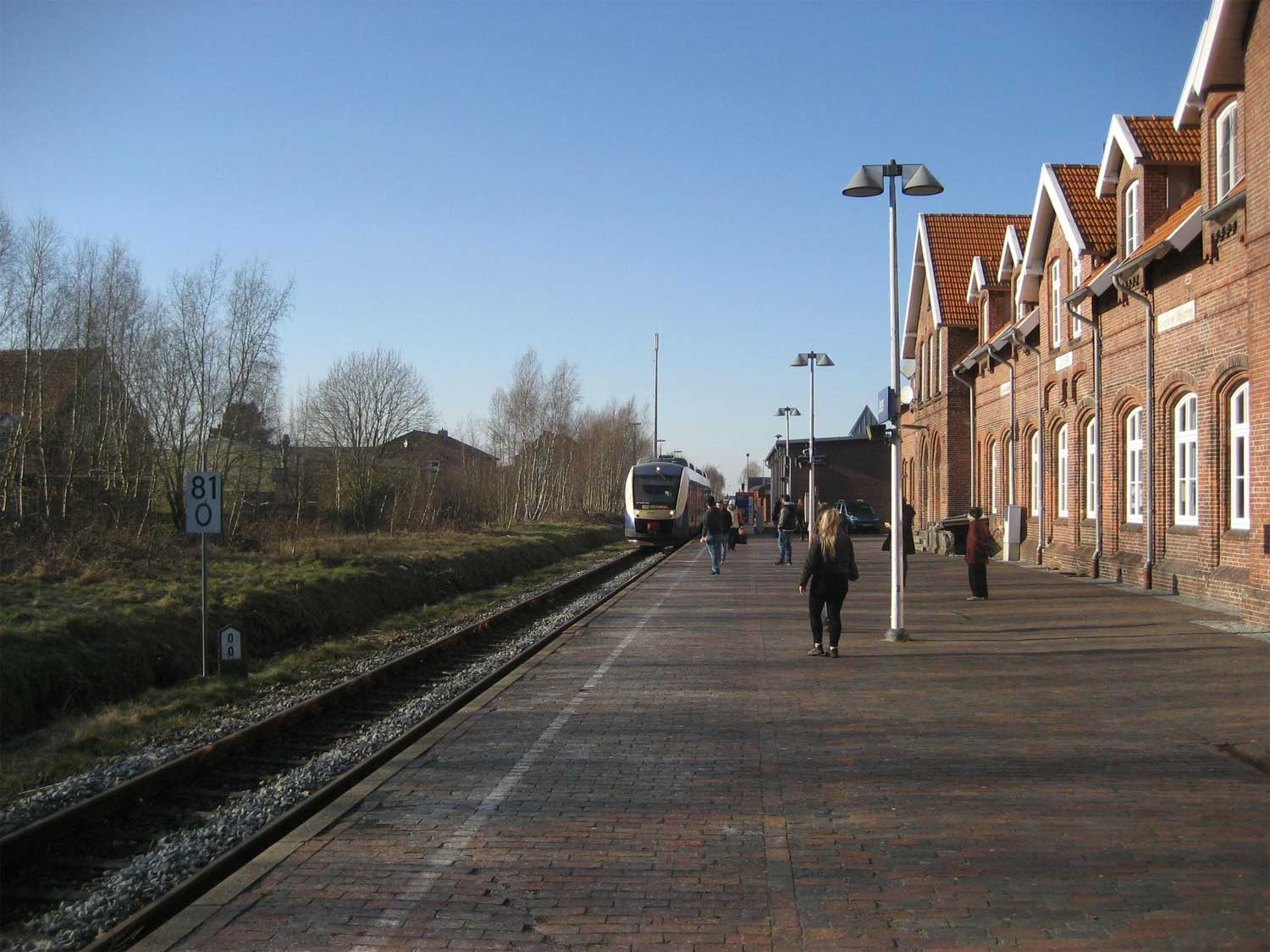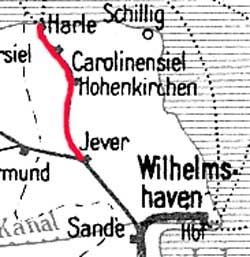 | Jever | 0,0 | km 12,96 der Strecke Sande 0,0 - Jever 12,96 - Landesgrenze Oldenburg/Niedersachsen km 16,06 = [km 77,90 - Asel 76,16 - Norden 30,41 (kommend)/ 31,56 (gehend nach Jever) - Emden Süd 0,0] |