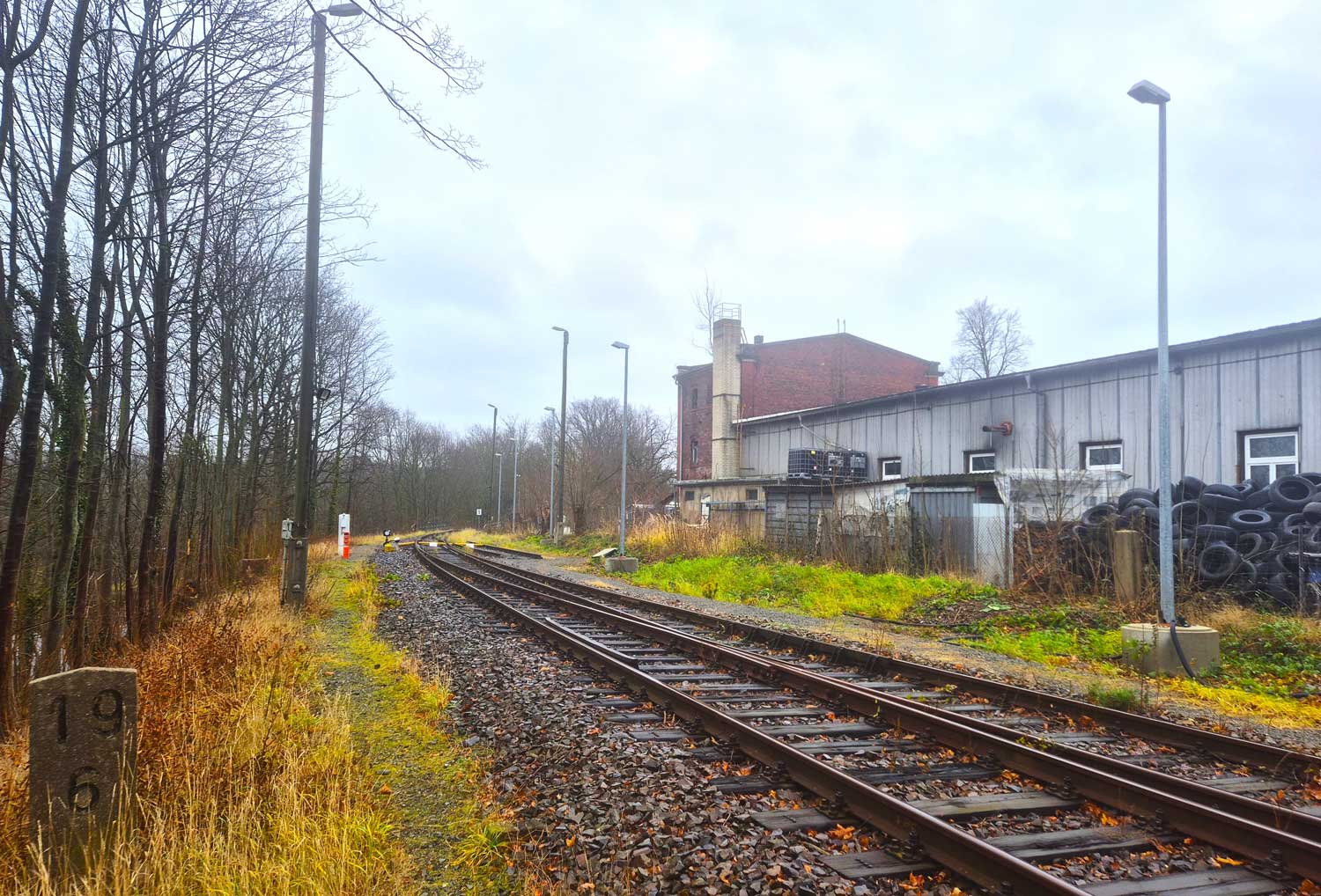 links das Anschlussgleis zur Lausitzer Grauwacke.