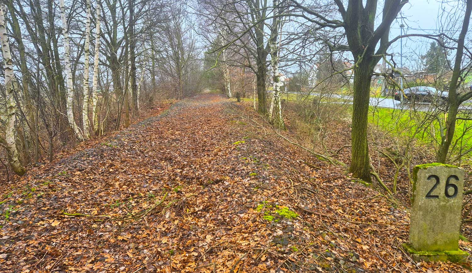 km 1,4 in Dresden-Klotzsche - Blick Richtung Streckenanfang