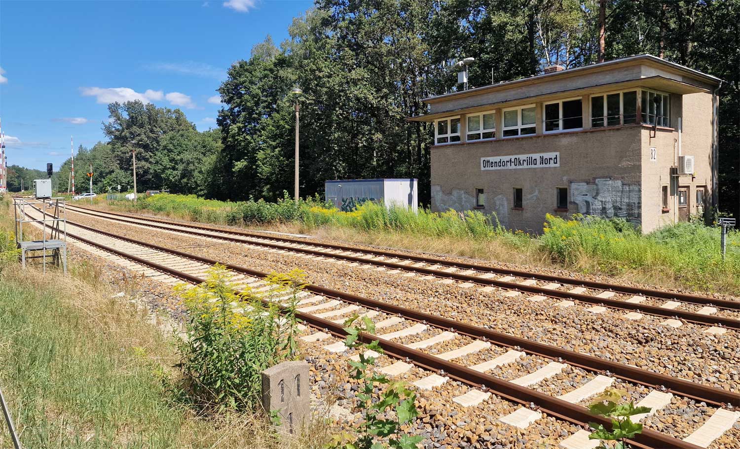 km 11,1 in Ottendorf-Okrilla Nord mit Stellwerk B2 - Blick Richtung Dresden-Klotzsche