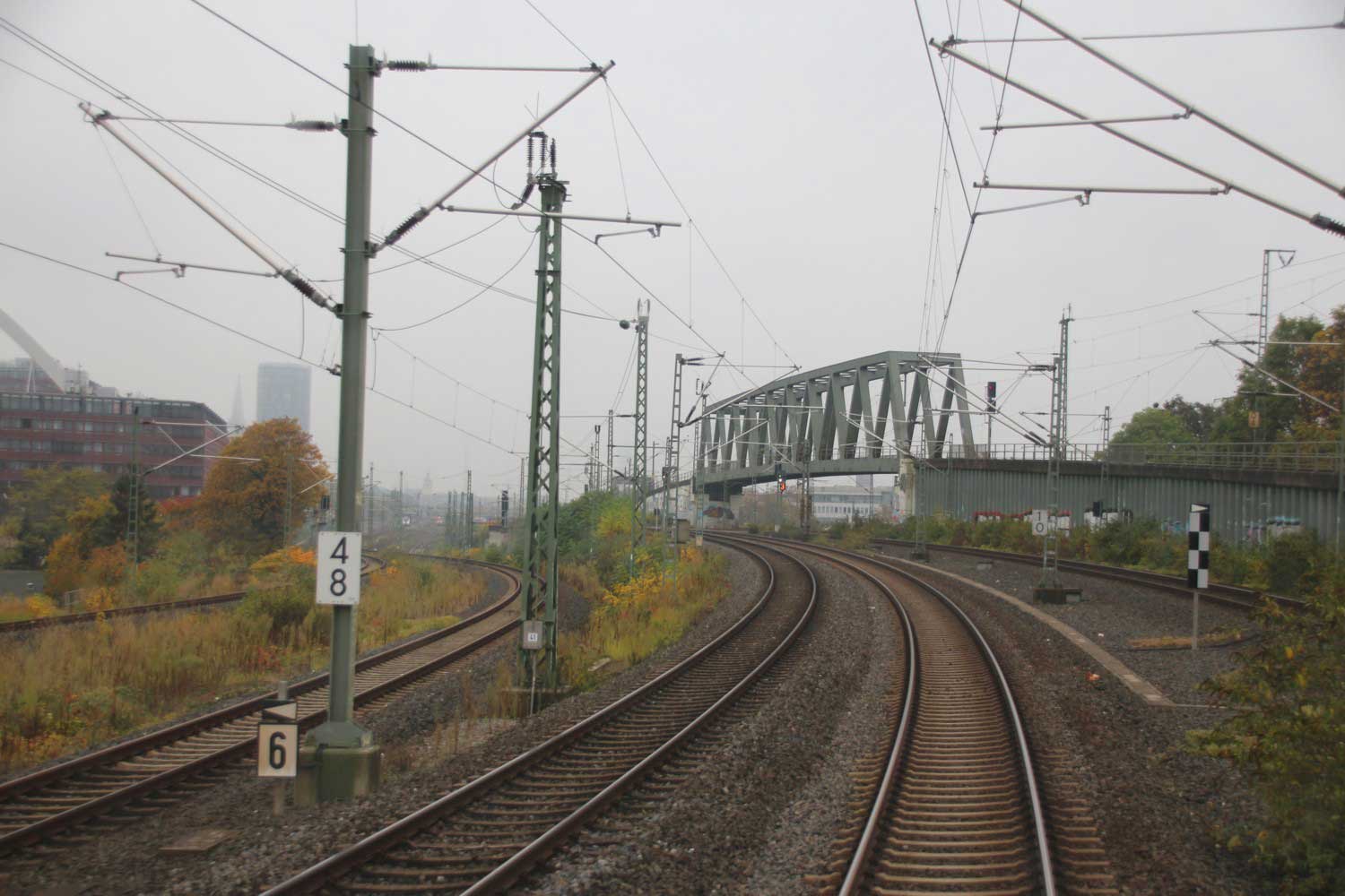 km 0,4 zwischen Abzw Köln Posthof und Köln-Kalk - Blick Richtung Streckenanfang