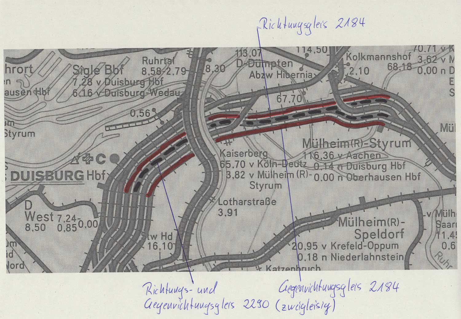 Mülheim (Ruhr)-Styrum, km 0,139 - Duisburg Hbf, km 6,320 - Duisburg Hbf, 32W604, km 6,972 (2184)