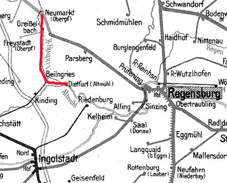 | Beilngries | 27,05 | km 46,34 der Strecke Eichstätt Bf 0,0 - Beilngries 46,34 |