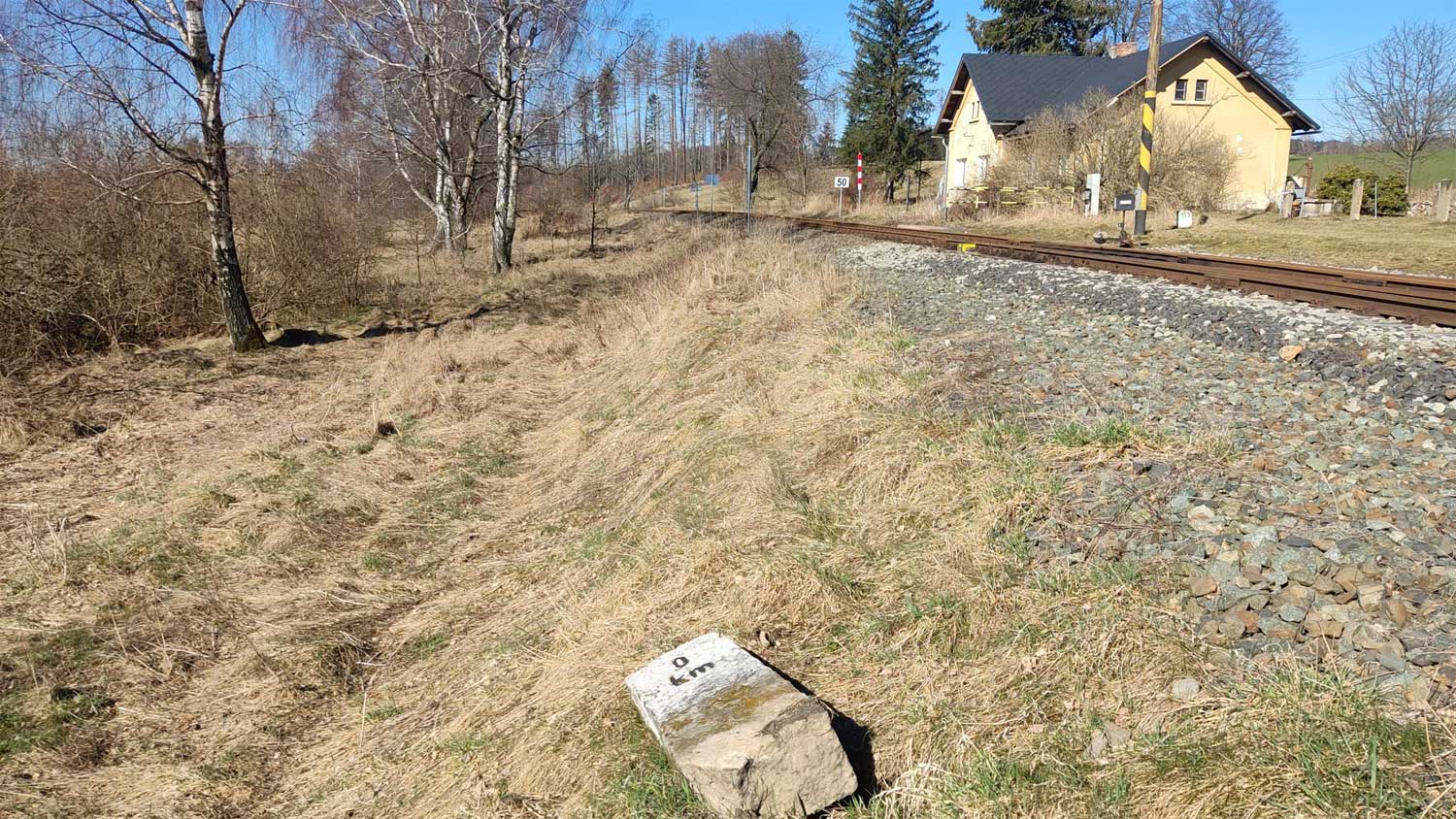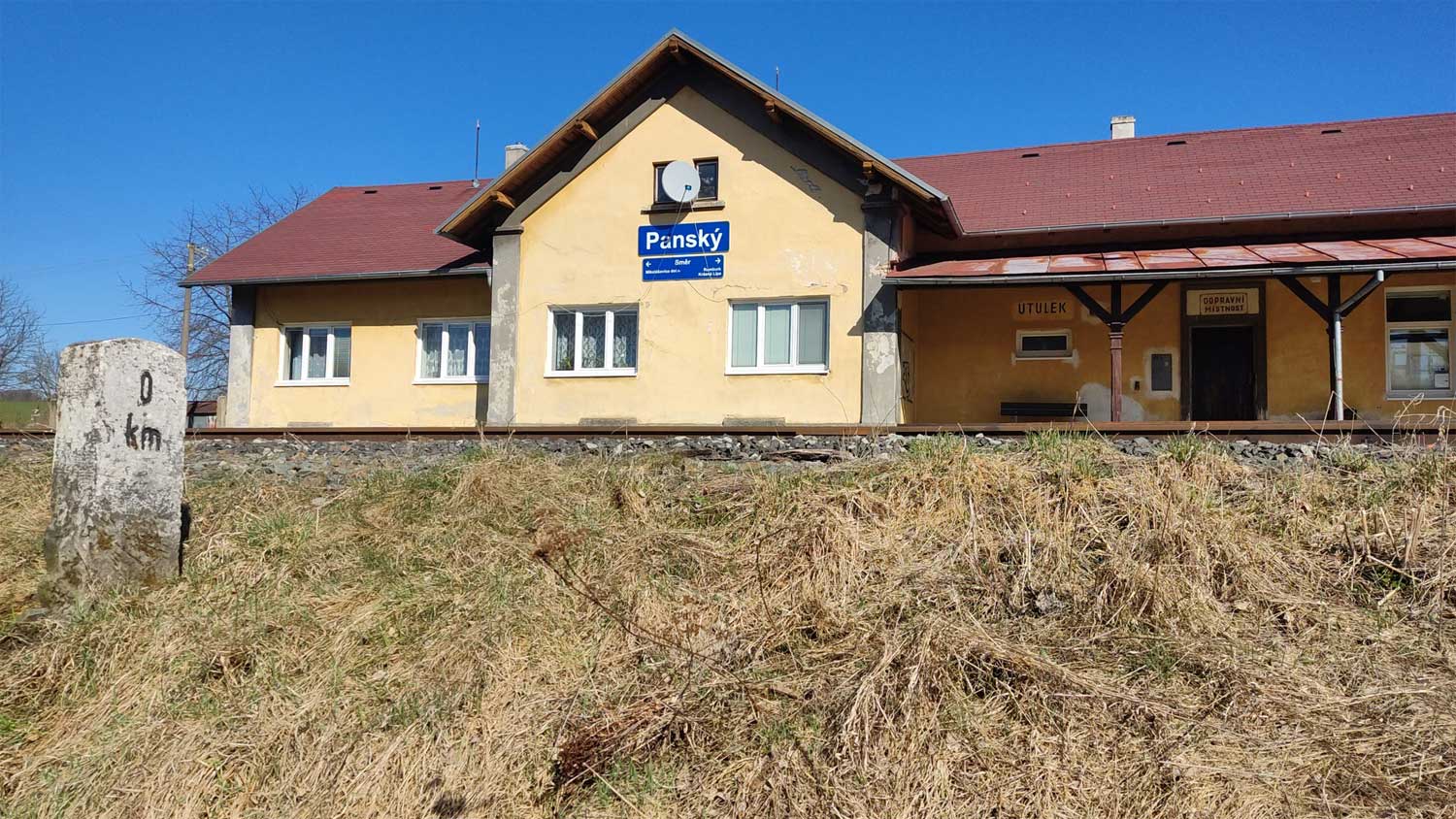 km 0,0 der Strecke Panský (Herrnwalde) 0,0 -