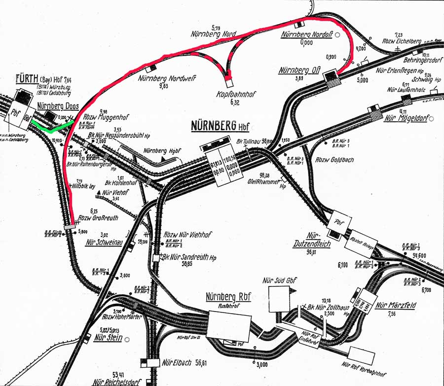 | Abzw | Verbindung zum Kopfbahnhof Nürnberg Nord | |