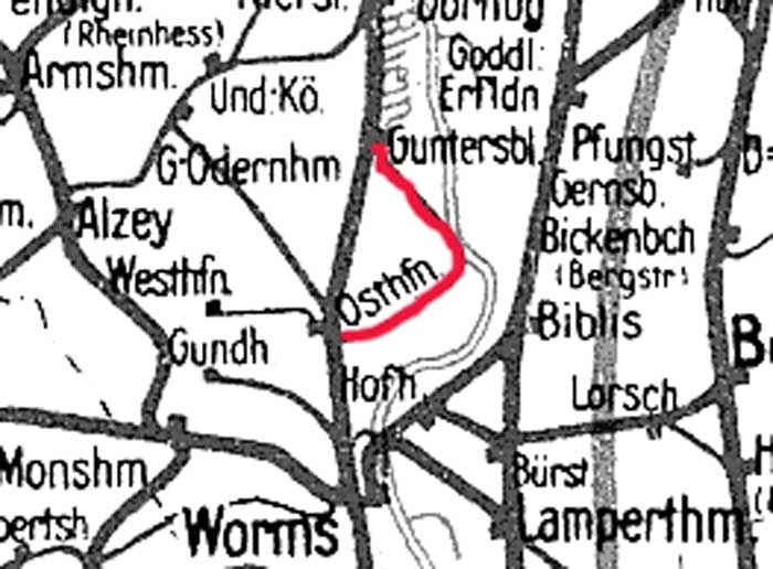bei km 16,4 in Gimbsheim - Blick Richtung Osthofen