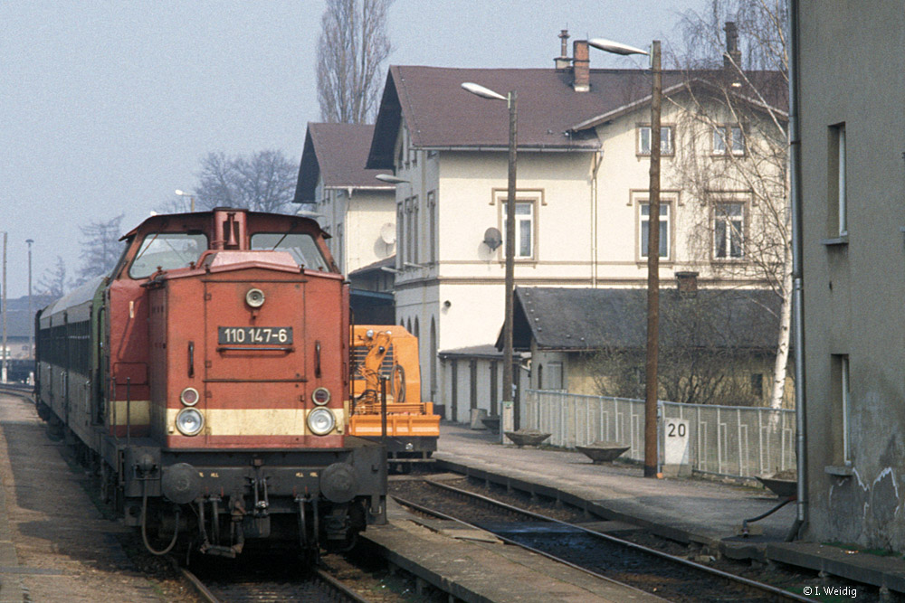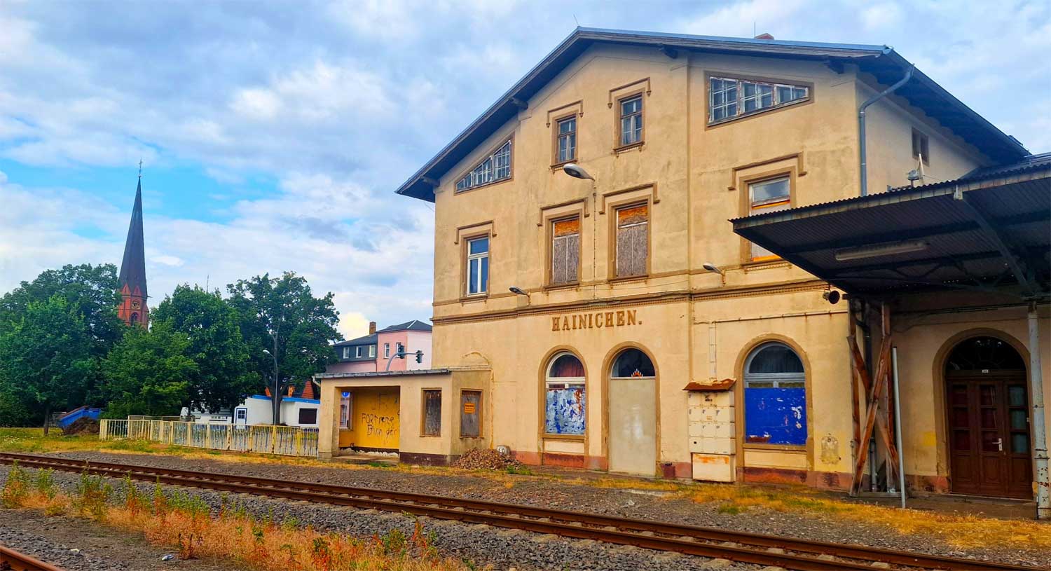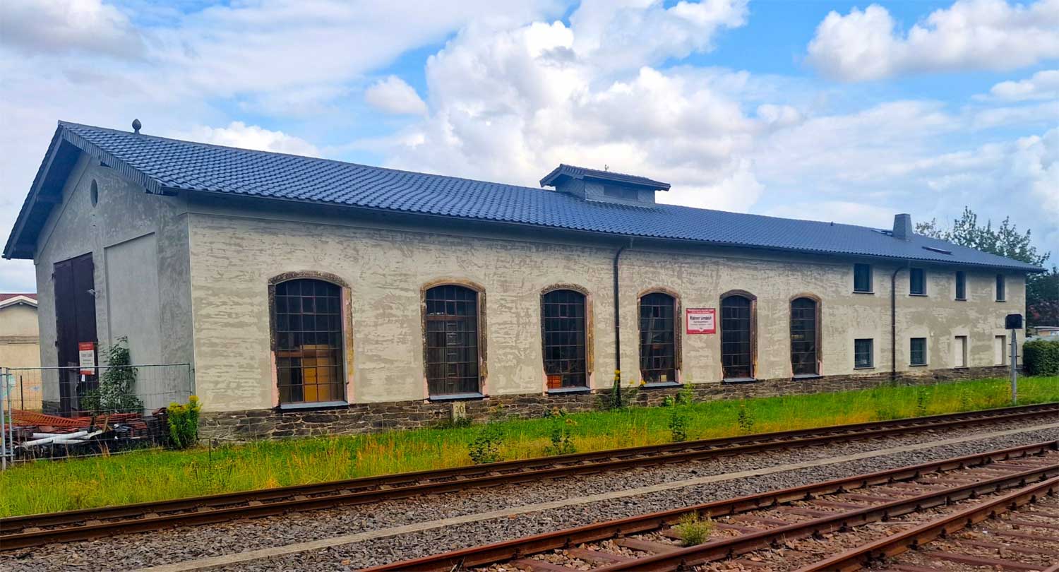 km 0,7 und km 0,9 lehnen am Empfangsgebäude in Roßwein