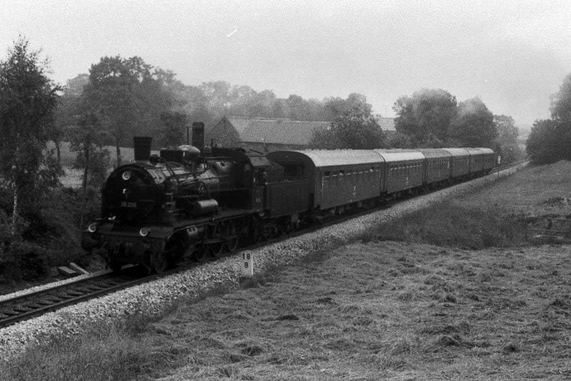 Bf Böhringen am 28.03.1998 - Abschiedsfahrt der 38 205 - hier am km 9,5
