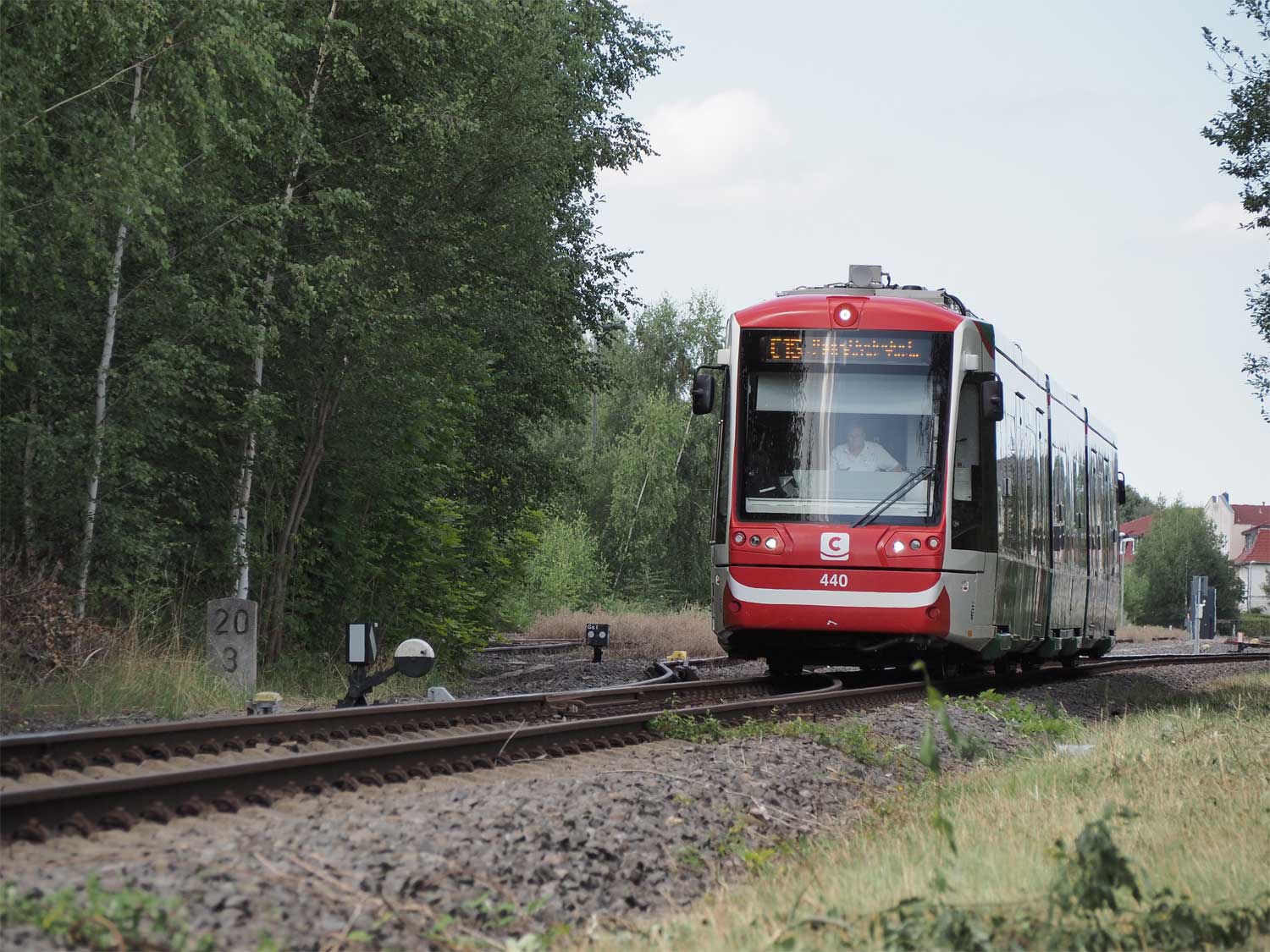 Zug befindet sich auf der Strecke Borsdorf (Sachs) 0,01 - Döbeln Hbf 54,42 - Nossen 73,41 - Coswig, Abzw. B 102,50 - (Coswig 104,17) (BC)