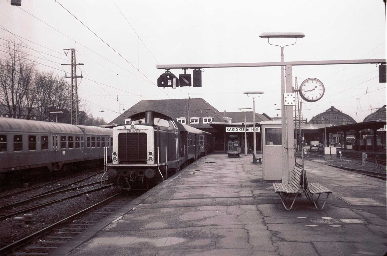 | Karlsruhe Hbf | 27,01 | km 72,90 der Strecke Mannheim Hbf 0,0 - Heidelberg Hbf (alt) 18,71 (neu) 17,490 = 19,100 - Karlsruhe Hbf 72,90 - Basel Bad. Bf 270,69 - Singen (Hoh) 384,08 - Konstanz 414,34 - Staatsgrenze 414,83 |