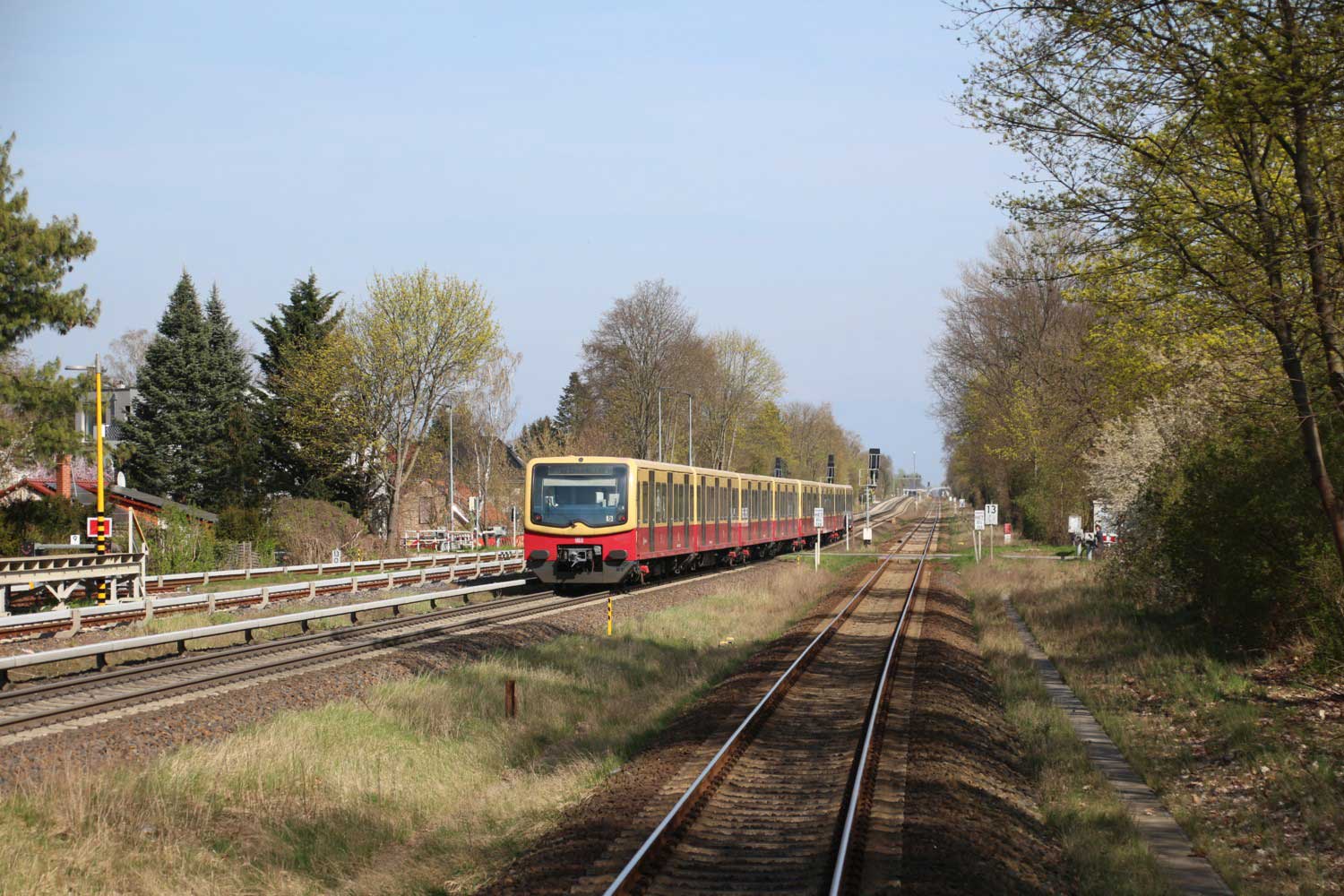 km 16,8 in Hoppegarten (Mark) - Blick Richtung Strausberg Rechts die Ostbahn (6078) Foto: Matthias Manske, April 2025