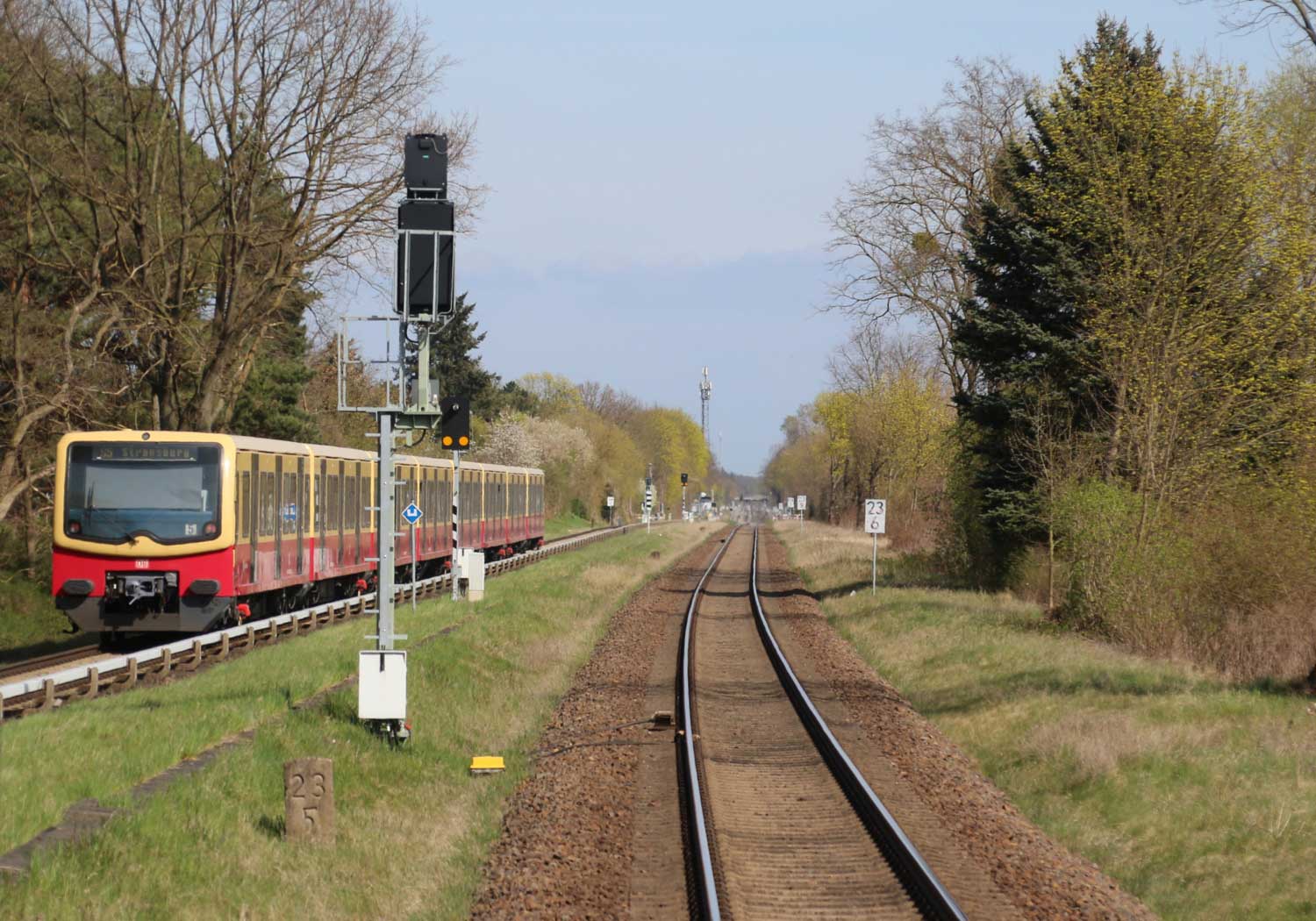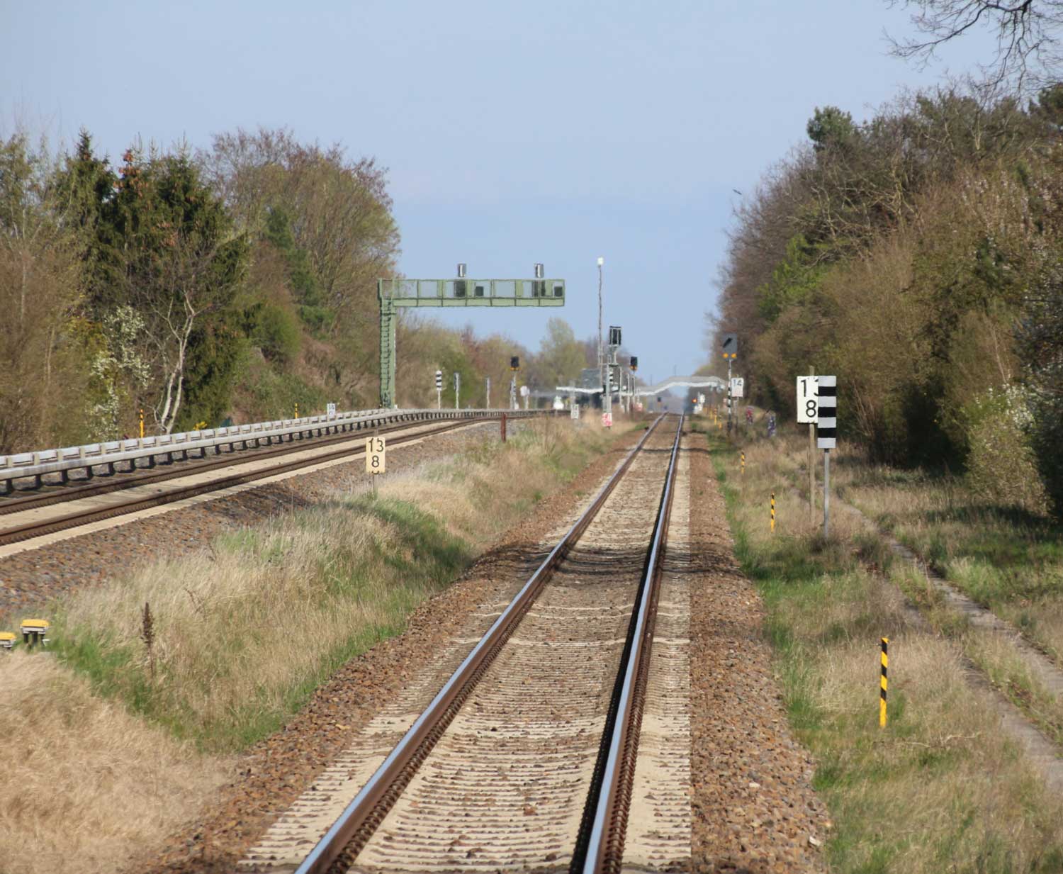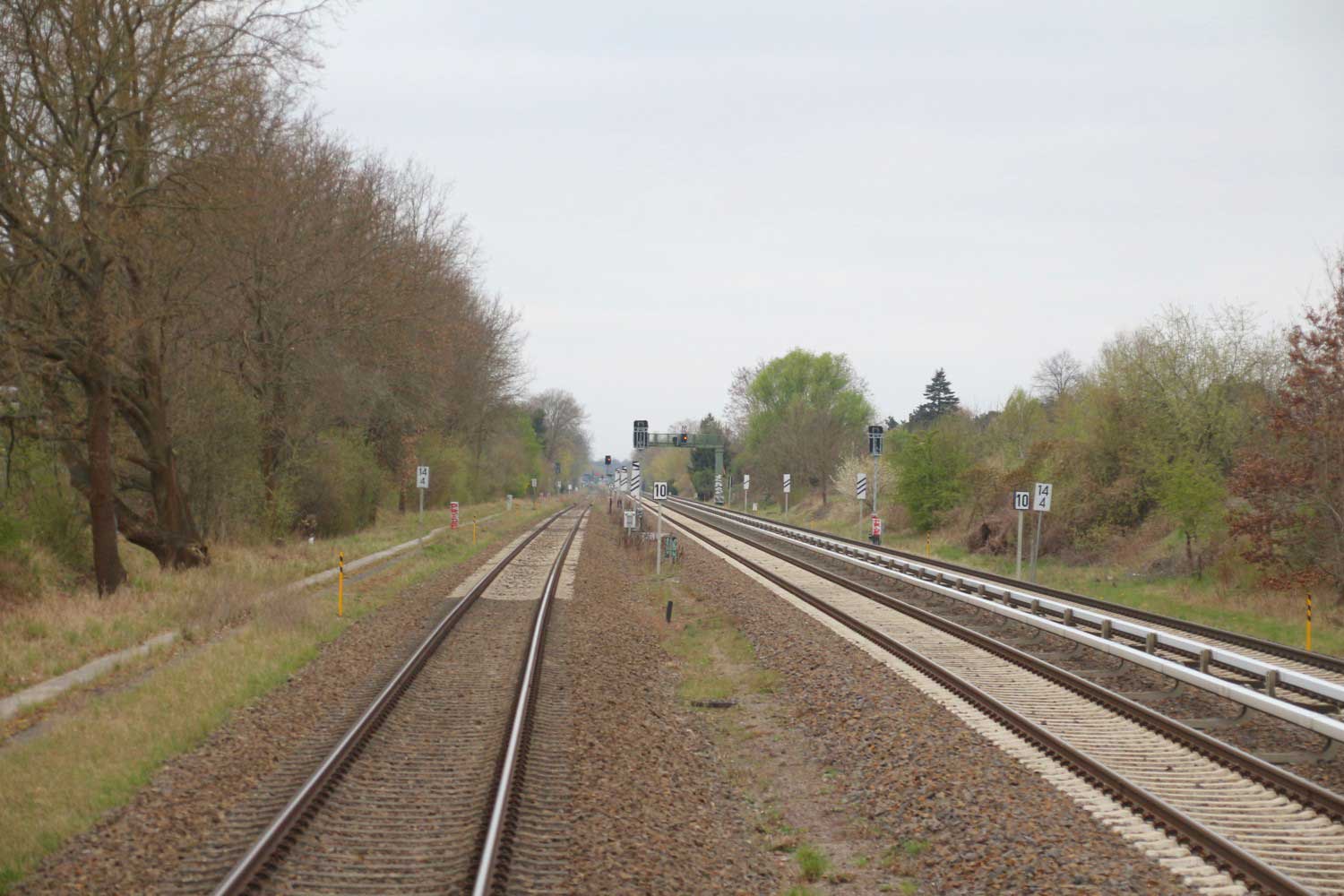 Blick Richtung Berlin km 24,8 (links) gehört zur Ostbahn (6078) Foto: Matthias Manske, April 2025