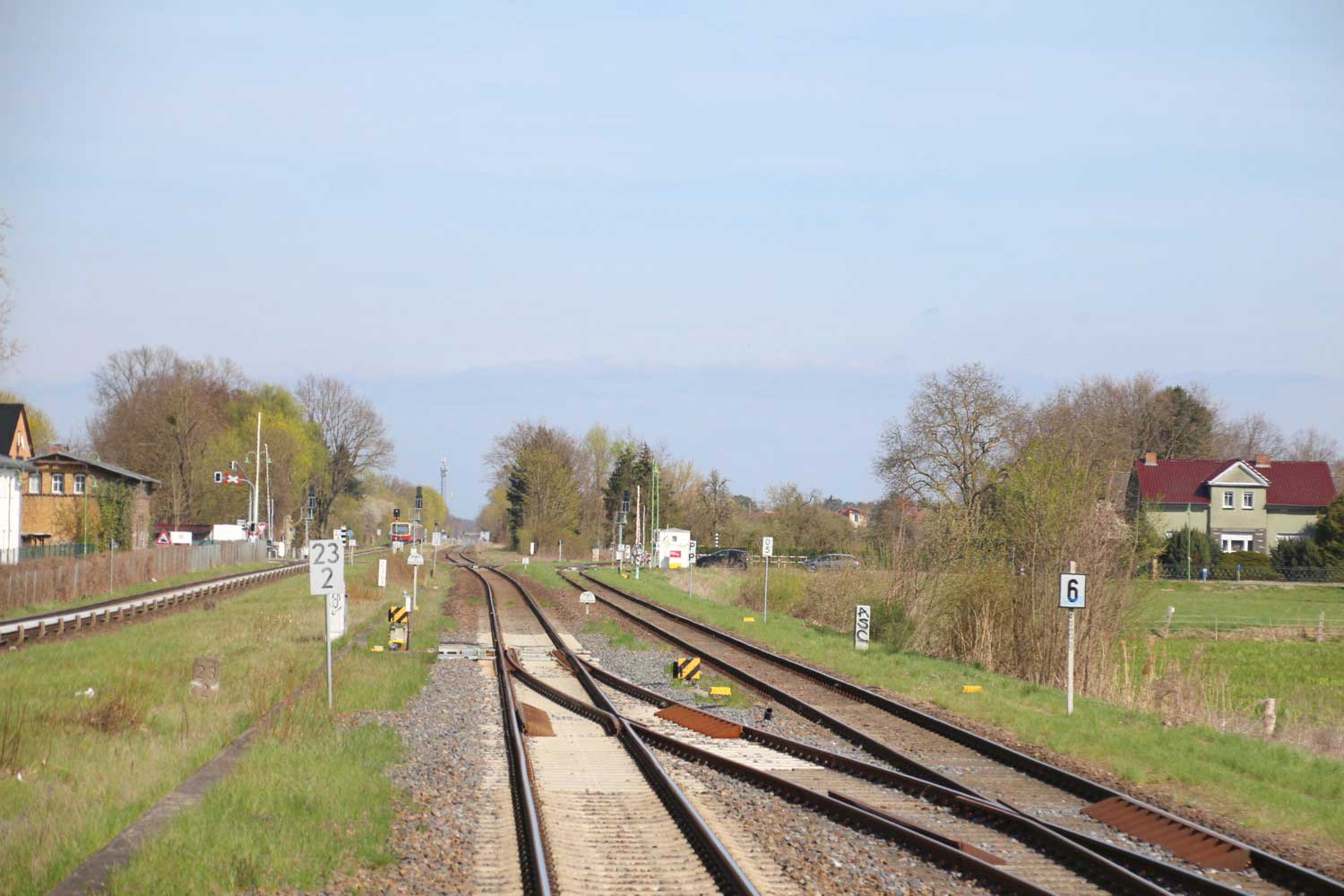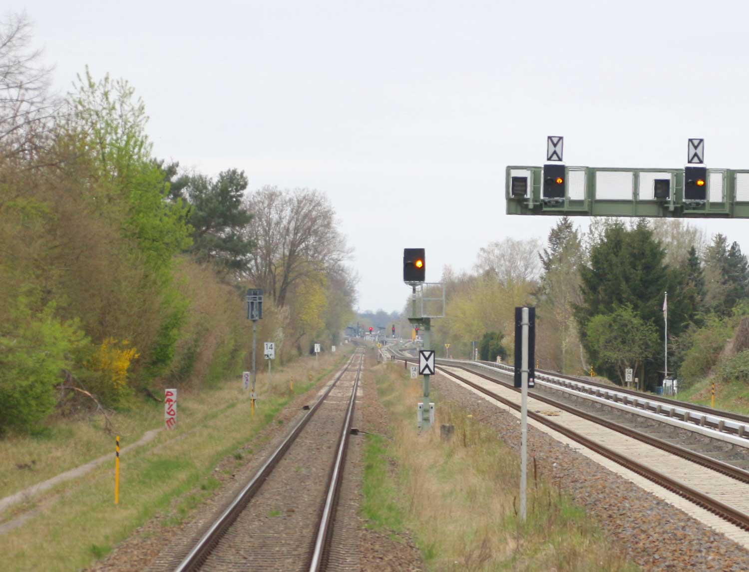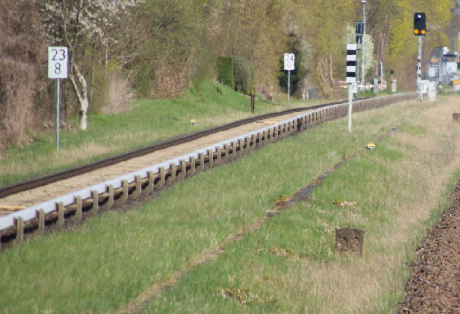 Strausberg km 23,3 und km 23,4 (rechts) gehören zur Ostbahn (6078) Foto: Matthias Manske, April 2025