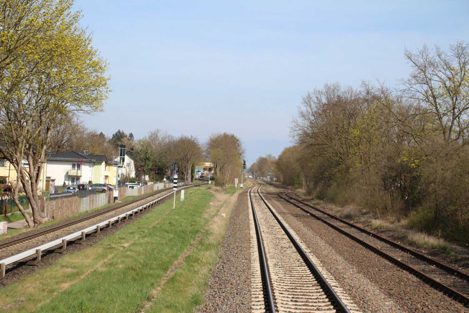 Fredersdorf (b Berlin) - Blick Richtung Berlin km 19,4 (links) gehört zur Ostbahn (6078) Foto: Matthias Manske, April 2025
