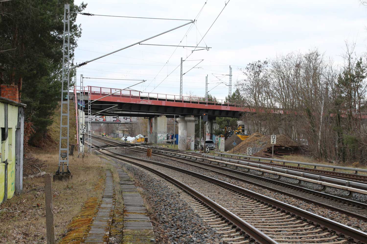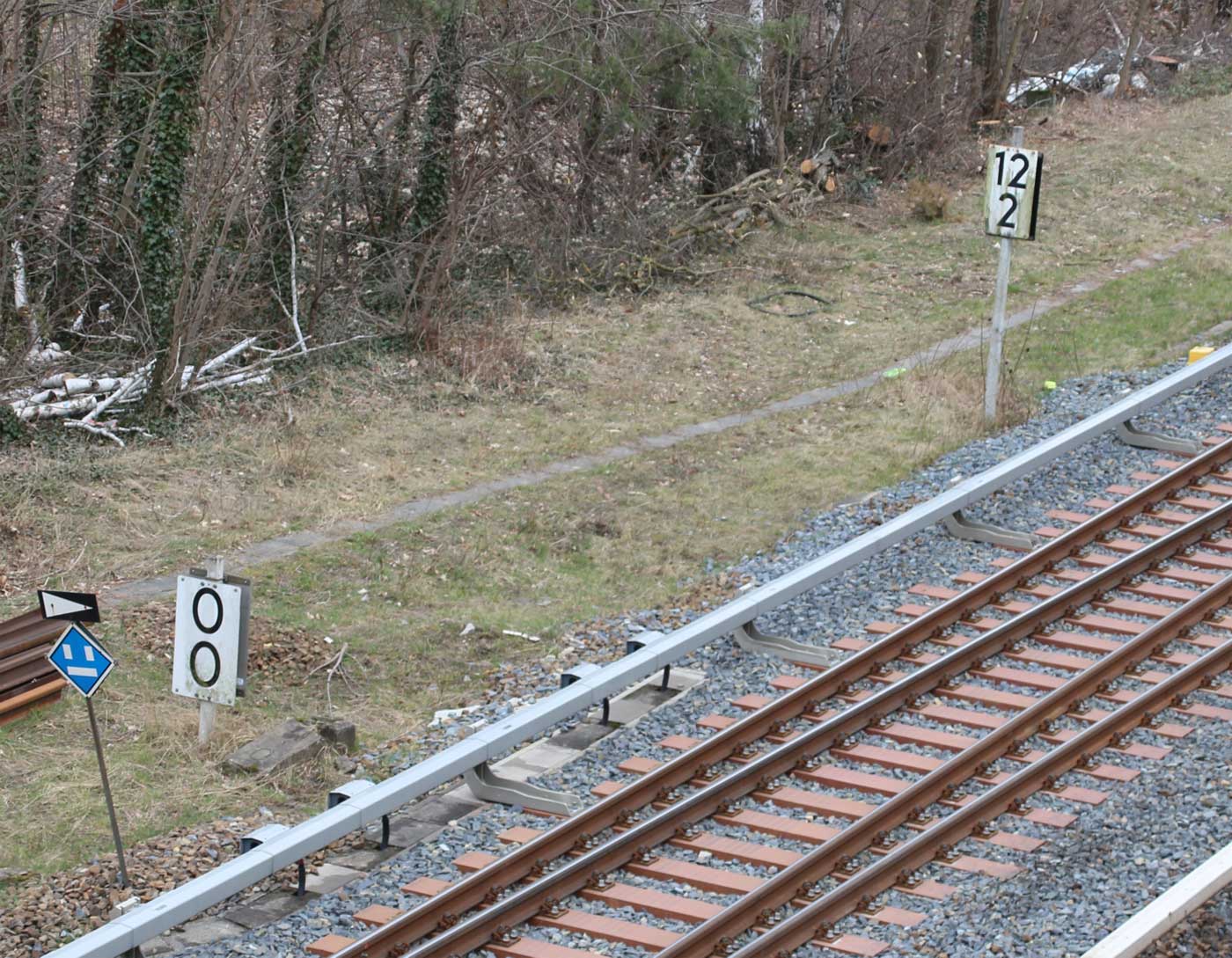 km 12,2 (Tafel rechts) gehört zum Gegenrichtungsgleis der S-Bahn-Strecke