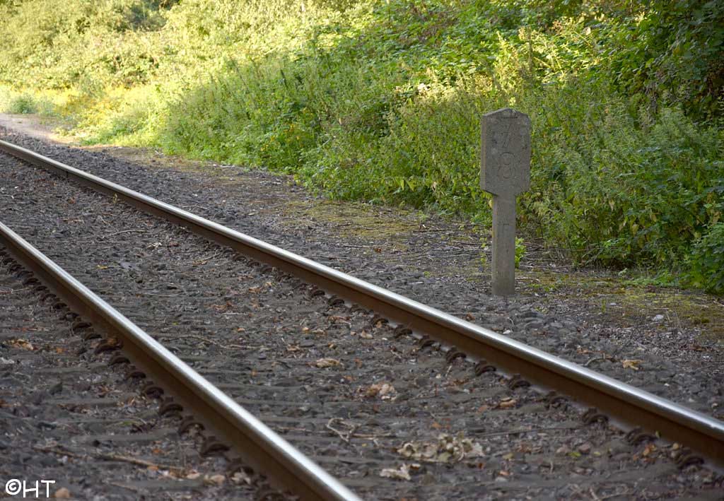 Nach dem Bahnhofsteil Pollhornweg wechselt die Kilometrierung auf REO.