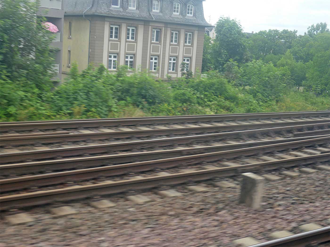 in der Mitte die beiden Gleise nach Wiesbaden Hbf