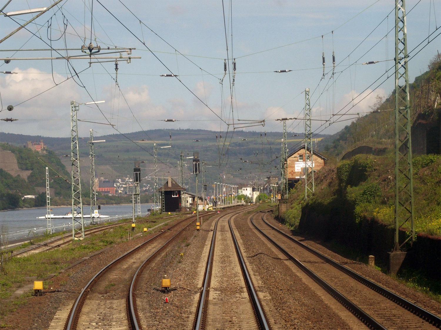 km 121,6 in Oberlahnstein und Brückenstellwerk Of - Blick Richtung Niederlahnstein
