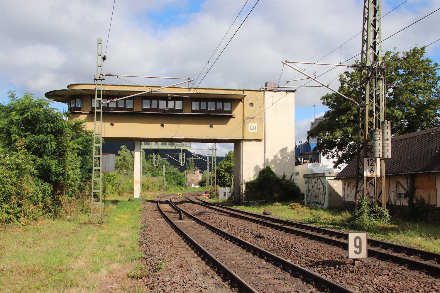 km 121,6 in Oberlahnstein und Brückenstellwerk Of (früher OB)