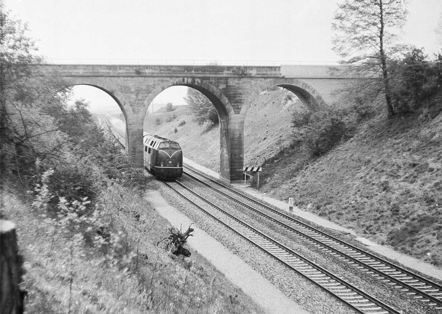 Nürnberg Hbf 0,0 - Ansbach 43,71 - Landesgrenze Bayern/Baden-Württemberg km 80,072 = km 10,310 - Crailsheim 0,0 (1985)
