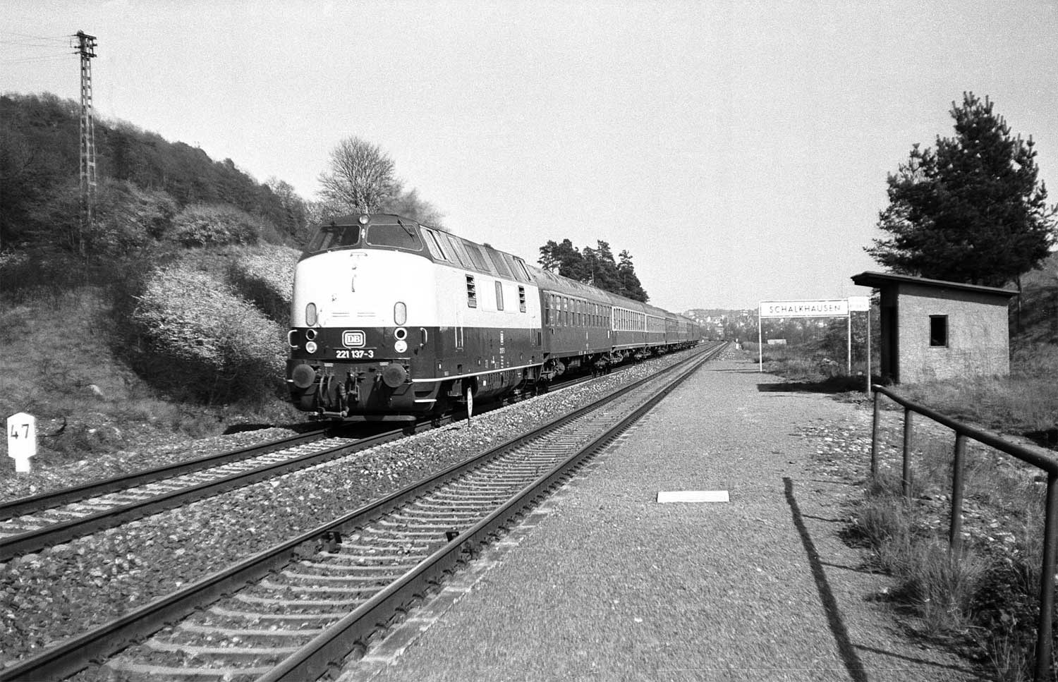 Nürnberg Hbf 0,0 - Ansbach 43,72 - Landesgrenze Bayern/Baden-Württemberg km 80,079 = km 10,310 - Crailsheim 0,0 (1985)