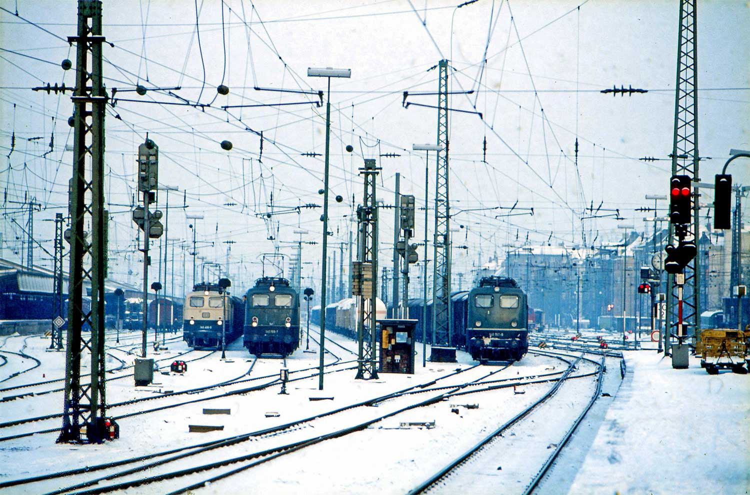 Gleiche Stelle bei km 0,6; aber Jahre später - Das Reiterstellwerk ist rosa.
