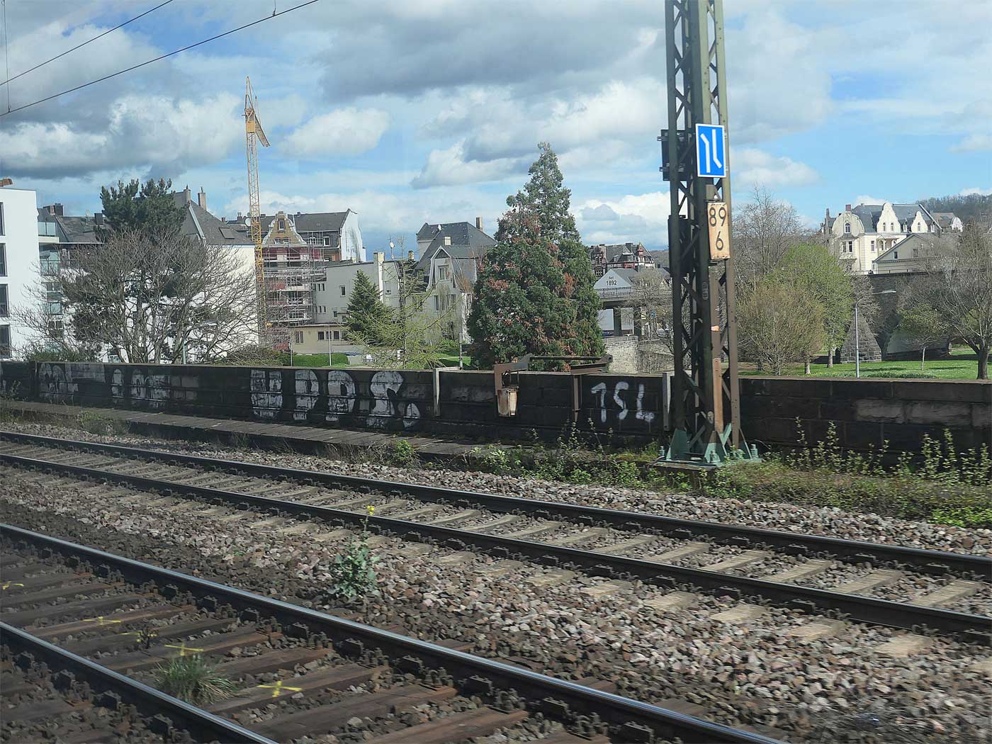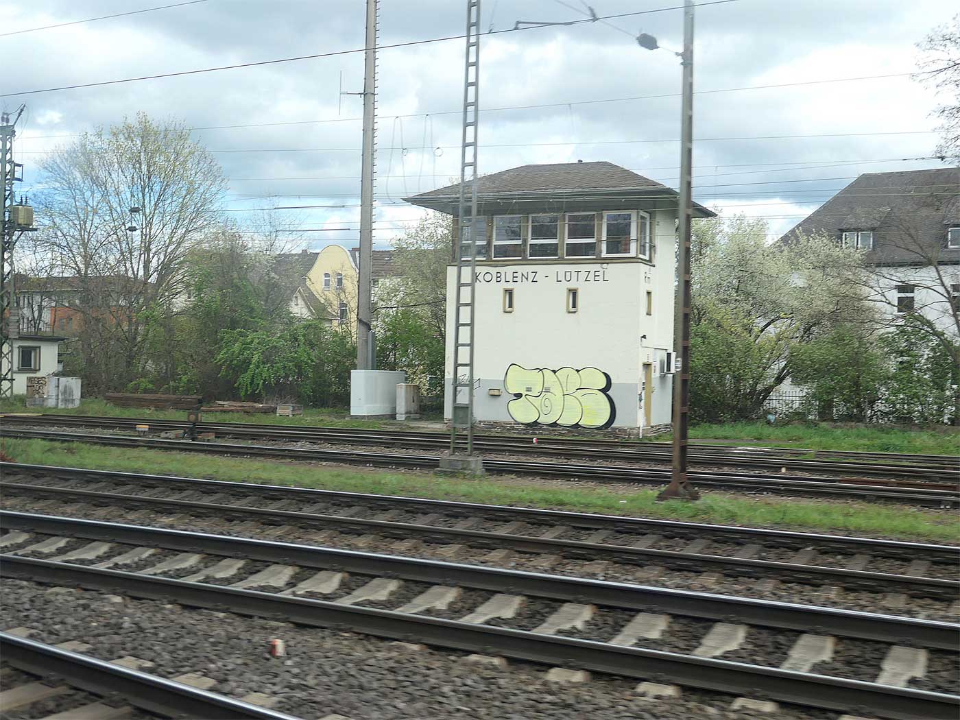 | Koblenz Hbf | 91,20 | km 103,75 der Strecke Wetzlar 0,0 - Limburg (Lahn) 52,17 - Koblenz Hbf 103,75 |